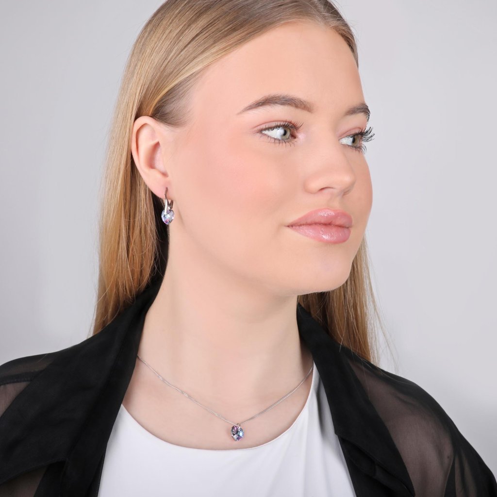 Parametre sady šperkov s kryštálmi Swarovski náušnice a prívesok fialová srdce 39003.5