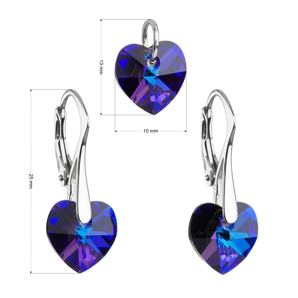 Parametre sady šperkov s kryštálmi Swarovski náušnice a prívesok modrá srdce 39003.5 heliotrope