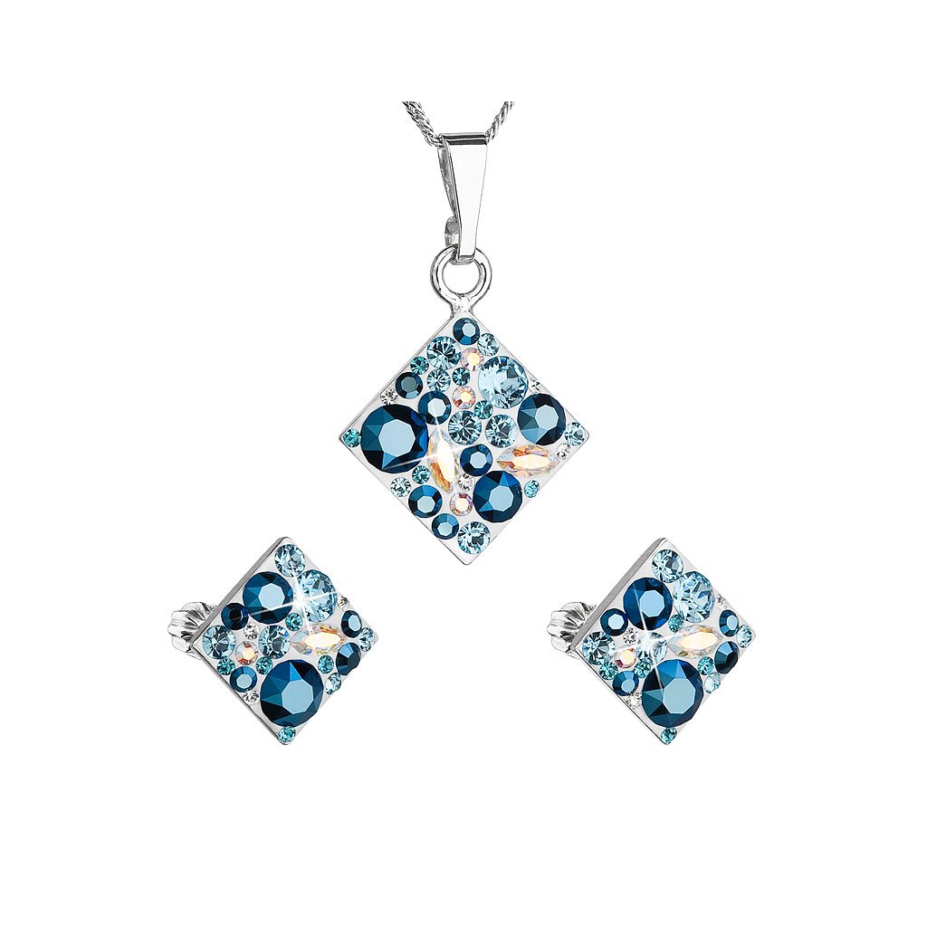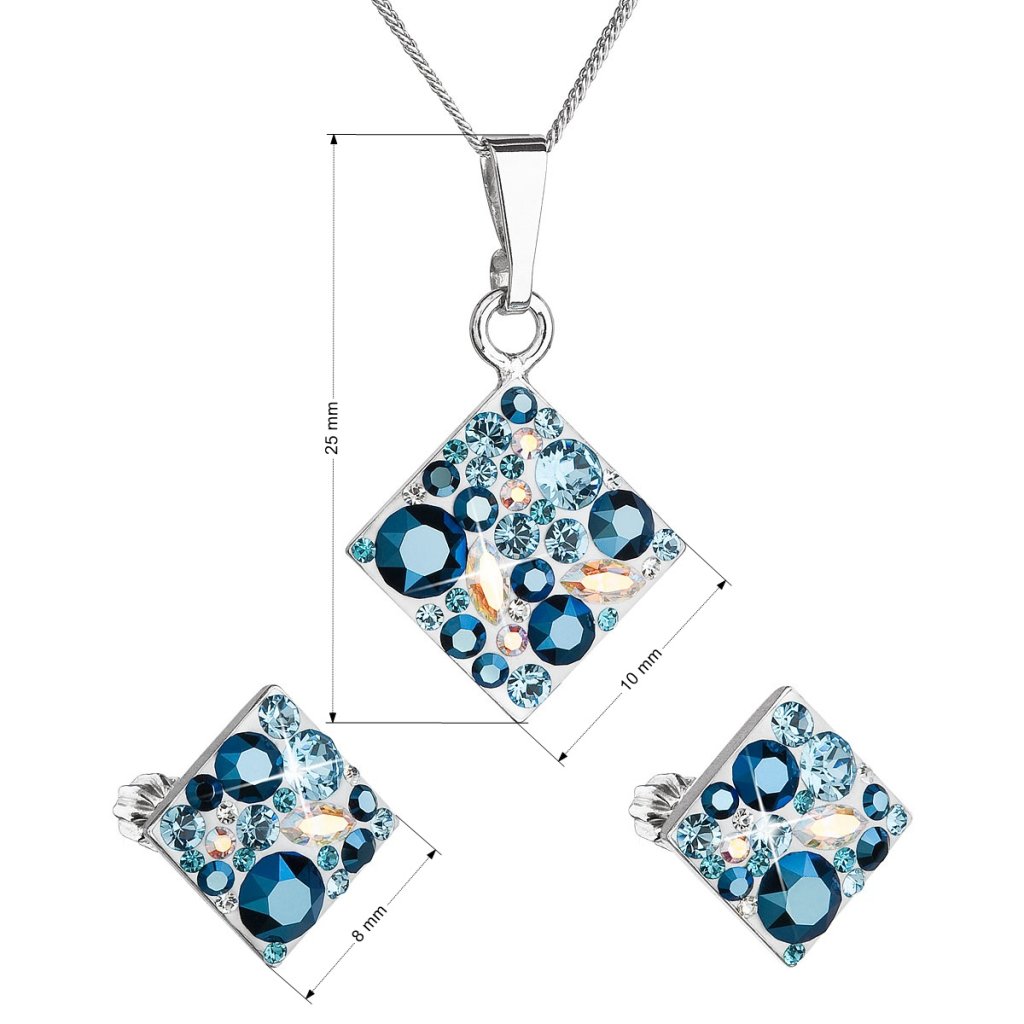 Súprava šperkov s kryštálmi Swarovski náušnice a prívesok modrý kosoštvorec 39126.3 aqua