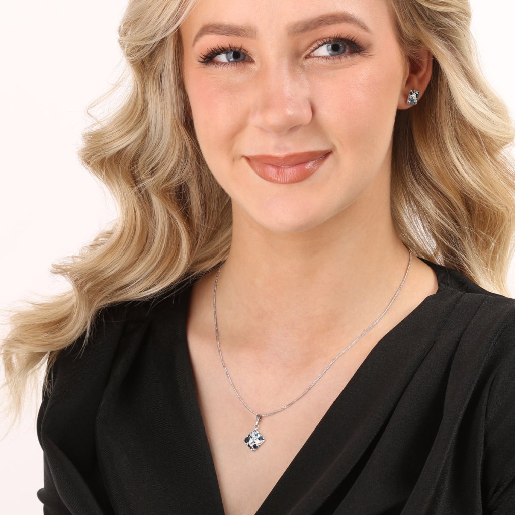 Ak sa zdobíte rada farebnými šperkami, máme pre vás pripravenú sadu, ktorá vás určite zaujme!Sada šperkov 39126.3 aqua obsahuje náušnice kôstky a retiazku s príveskom. Šperky sú v tvare kosoštvorca a sú vyrobené zo striebra rýdzosti 925/1000, ktoré prešlo povrchovou úpravou ródiom. Ródium chráni šperk proti sčerneniu, zožltnutiu i poškriabaniu. Prívesok aj náušnice sú bohato zdobené trblietavými Swarovski kryštálmi v rôznych farbách. Náušnice majú zapínanie na balónik. Keďže šperky neobsahujú žiadny prídavok niklu , môžu ich bez obáv nosiť aj alergici.