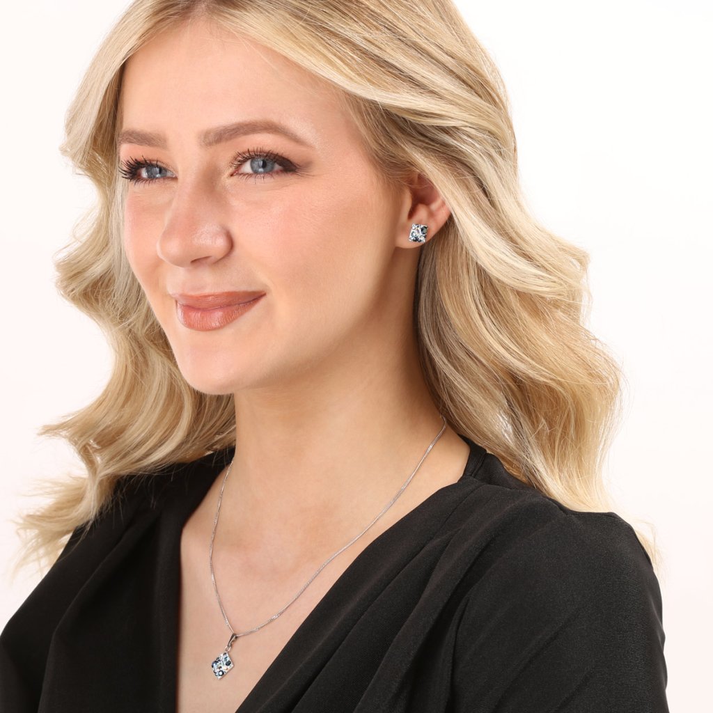 Parametre sady šperkov s kryštálmi Swarovski náušnice, retiazka a prívesok modrý kosoštvorec 39126.3 aqua