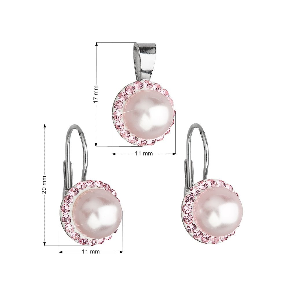 Parametre sady šperkov s kryštálmi Swarovski náušnice a prívesok ružová perla okrúhle 39091.3