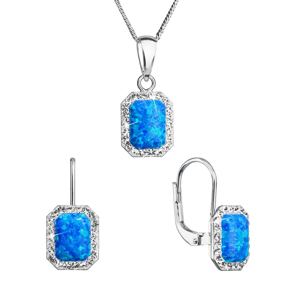 Súprava šperkov so syntetickým opálom a kryštálmi Preciosa náušnice a prívesok modrej 39175.1