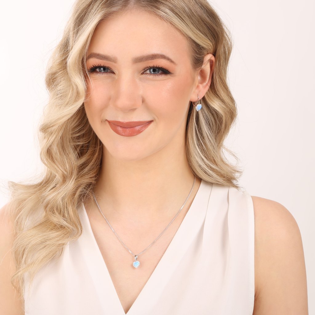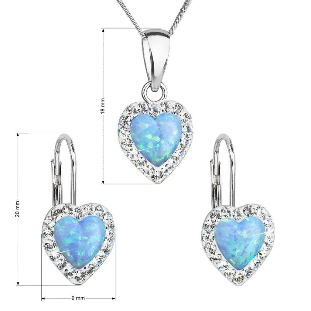 Parametre sady šperkov so syntetickým opálom a kryštálmi Preciosa náušnice a prívesok svetlo modré srdce 39161.1