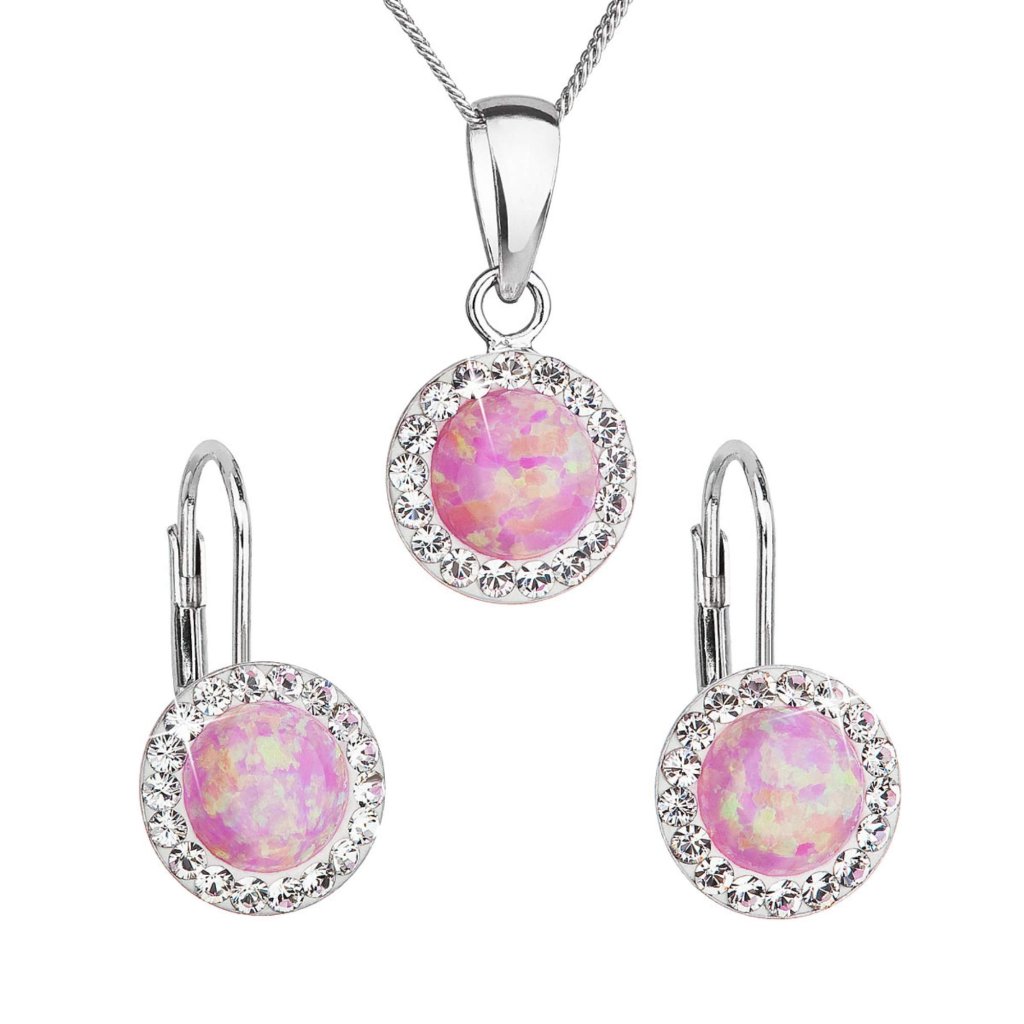 Súprava šperkov so syntetickým opálom a kryštálmi Preciosa náušnice a prívesok svetlo ružové okrúhle 39160.1