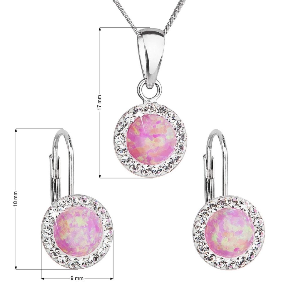 Parametre sady šperkov so syntetickým opálom a kryštálmi Preciosa náušnice a prívesok ružové okrúhle 39160.1