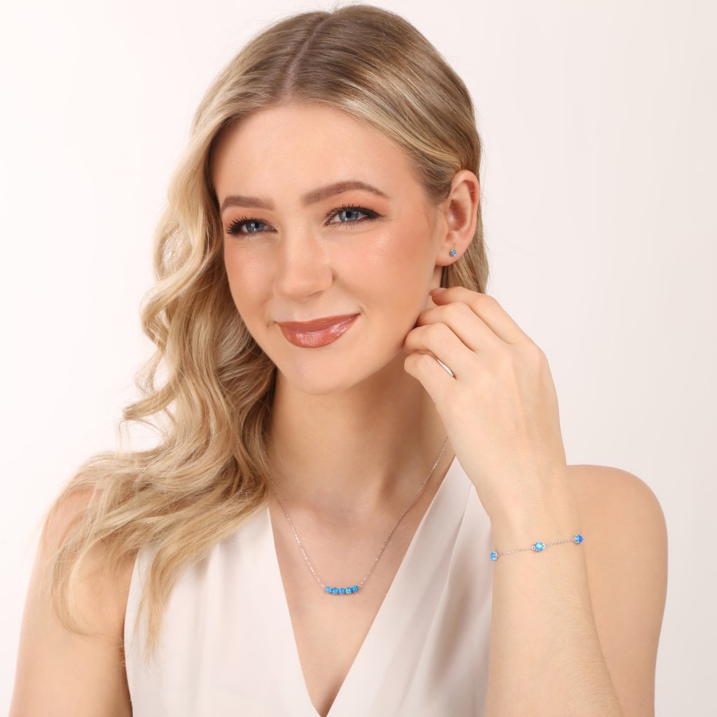 Súprava šperkov so syntetickými opálmi modrej okrúhle 19035.3 blue