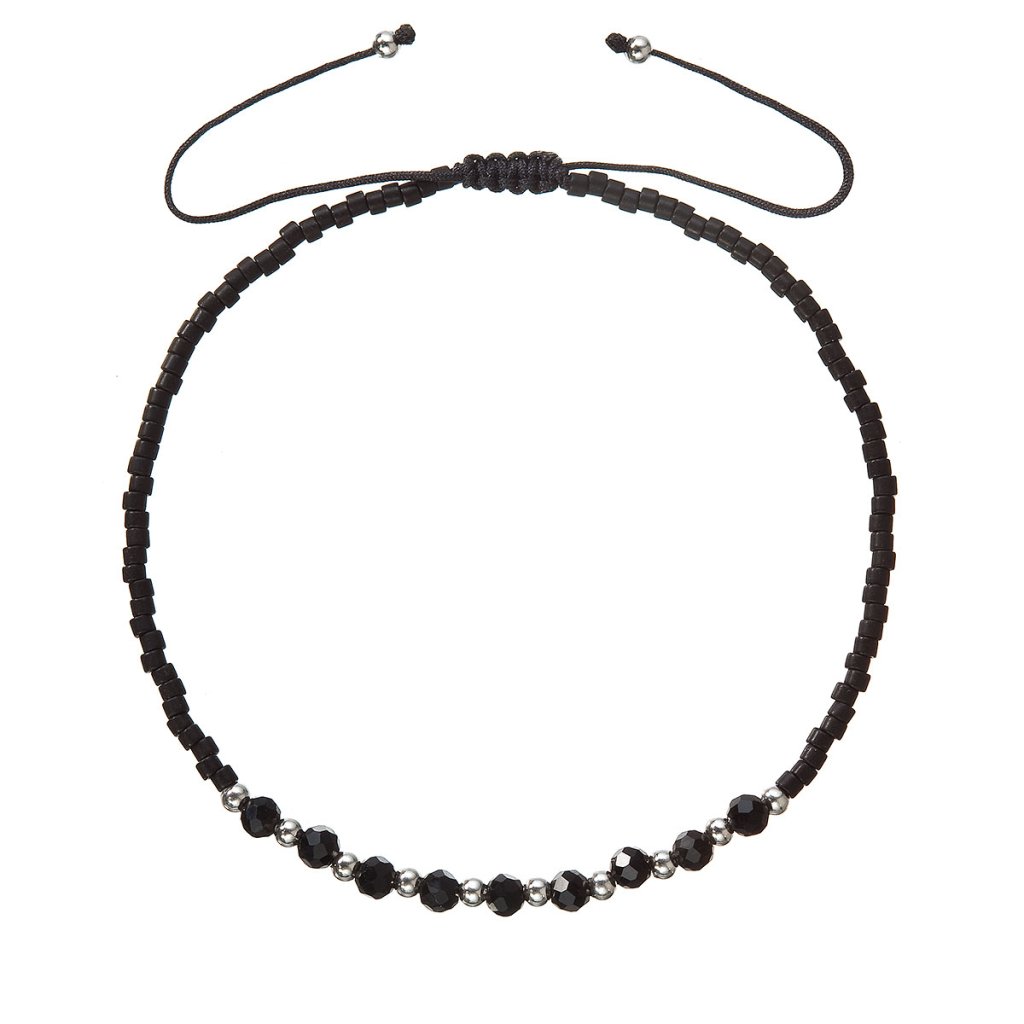 Zamilujte si tajomný šarm tohto textilného Miyuki náramku v hlbokom odtieni čiernej spolu s onyxom . Ručne vyrobený z precízne vybraných korálikov Miyuki, tento náramok kombinuje eleganciu a jednoduchosť do dokonalej harmónie.Jeho minimalistický dizajn prináša do vášho každodenného štýlu štipku tajomstva a sofistifikácie . Buďte svojim vlastným módnym guruom s týmto vysoko štýlovým doplnkom, ktorý zdôrazní vašu osobnosť a eleganciu.