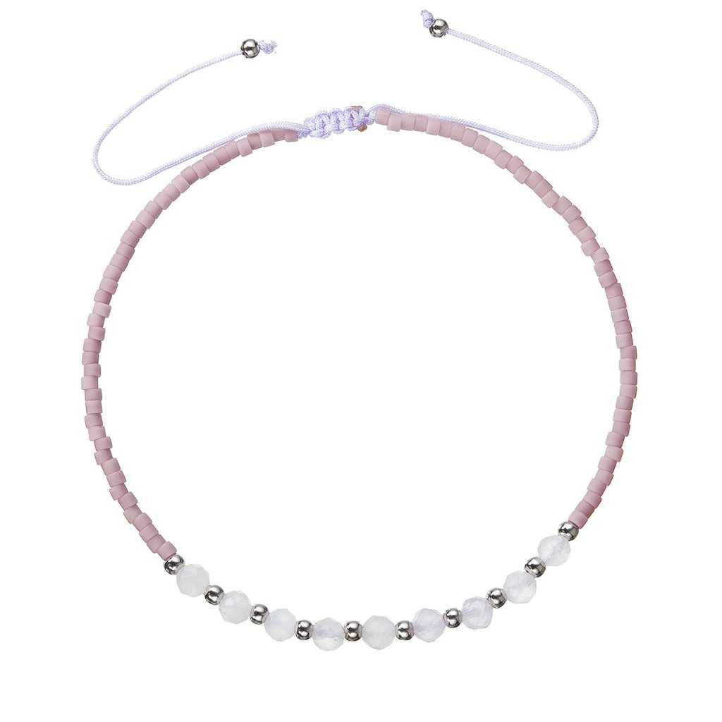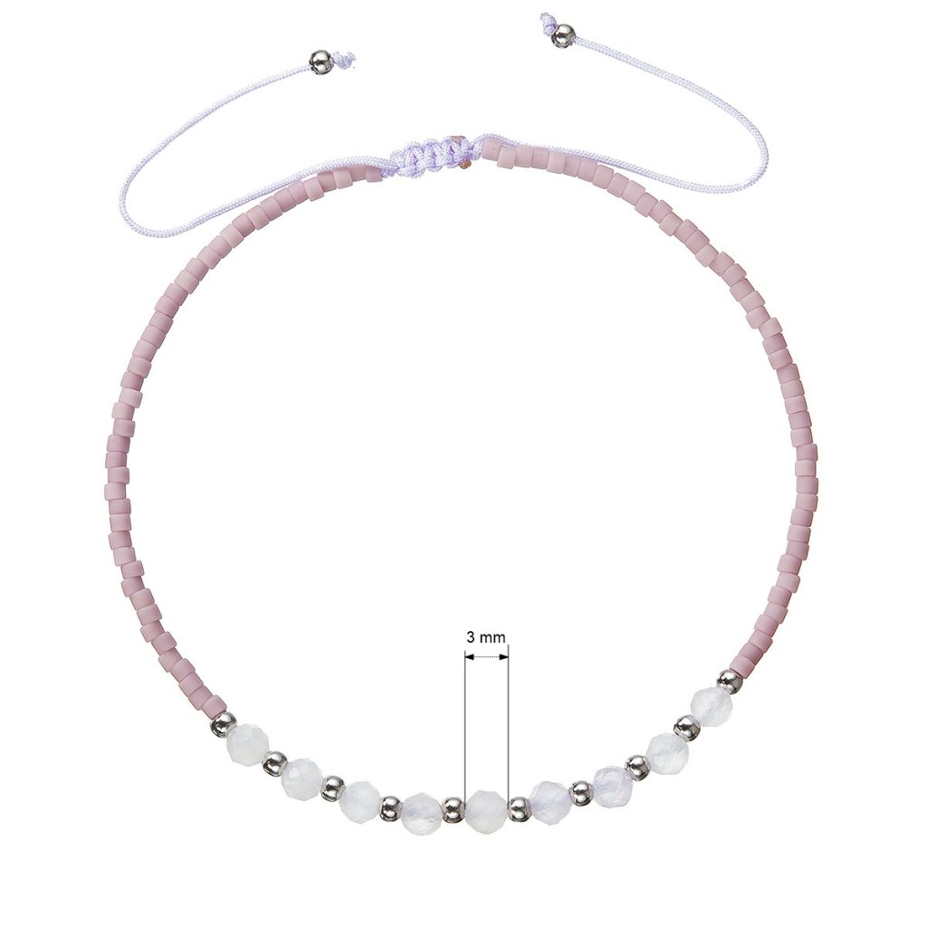 Jeho fialové odtiene evokujú mystérium a hĺbku, zatiaľ čo jemné ametysty dodávajú náramku noblesný lesk. Ručne vyrobený so starostlivosťou a precíznosťou, tento náramok je nielen štýlovým doplnkom, ale aj výrazom vašej individuality a vkusu. Náramok Miyuki 13037.3 sa skladá z jemne fialových a bielych korálok. Je dozdobený komponentom guličiek zo striebra 925/1000.