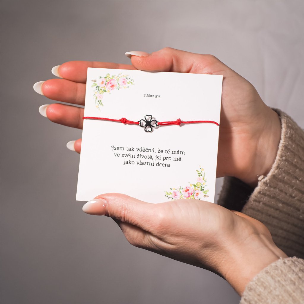 Červený povrázok je tradične považovaný za ochranný talizman proti negatívnej energii av kombinácii so štvorlístkom predstavuje tento náramok mocný symbol ochrany a prináša do života nositeľa pozitívnu energiu a šťastie.