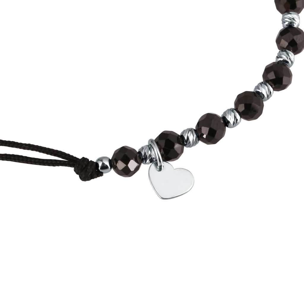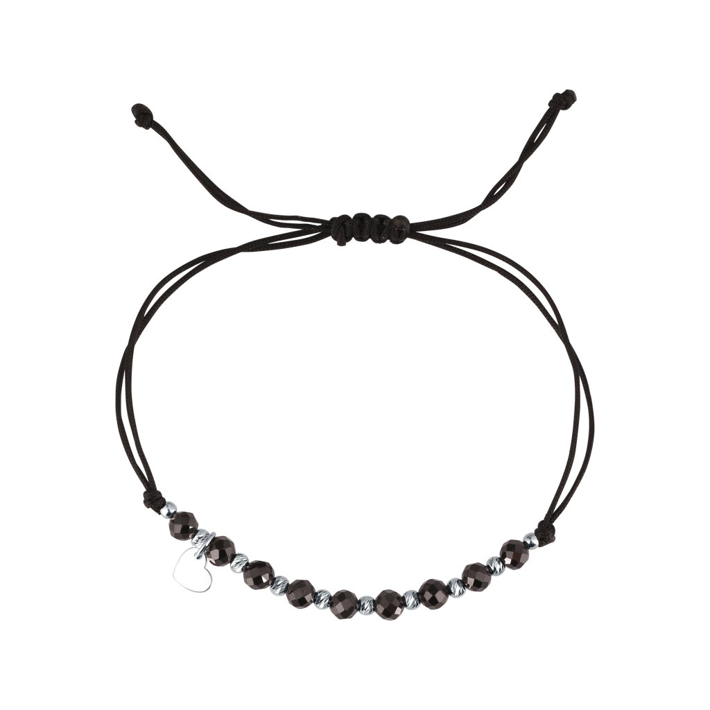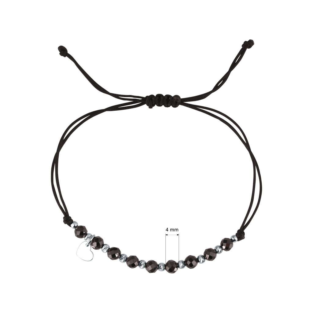 Náramok s prírodnými fazetovanými minerálnymi kameňmi vám prinesie krásny módny doplnok a taktiež podporí Vašu duševnú a fyzickú rovnováhu.Je vyrobený z hladkej pevnej šnúrky a korálok zo spinelu, ktoré sa striedajú so striebornými guličkami, navyše je prizdobený príveskom tvaru srdiečka.