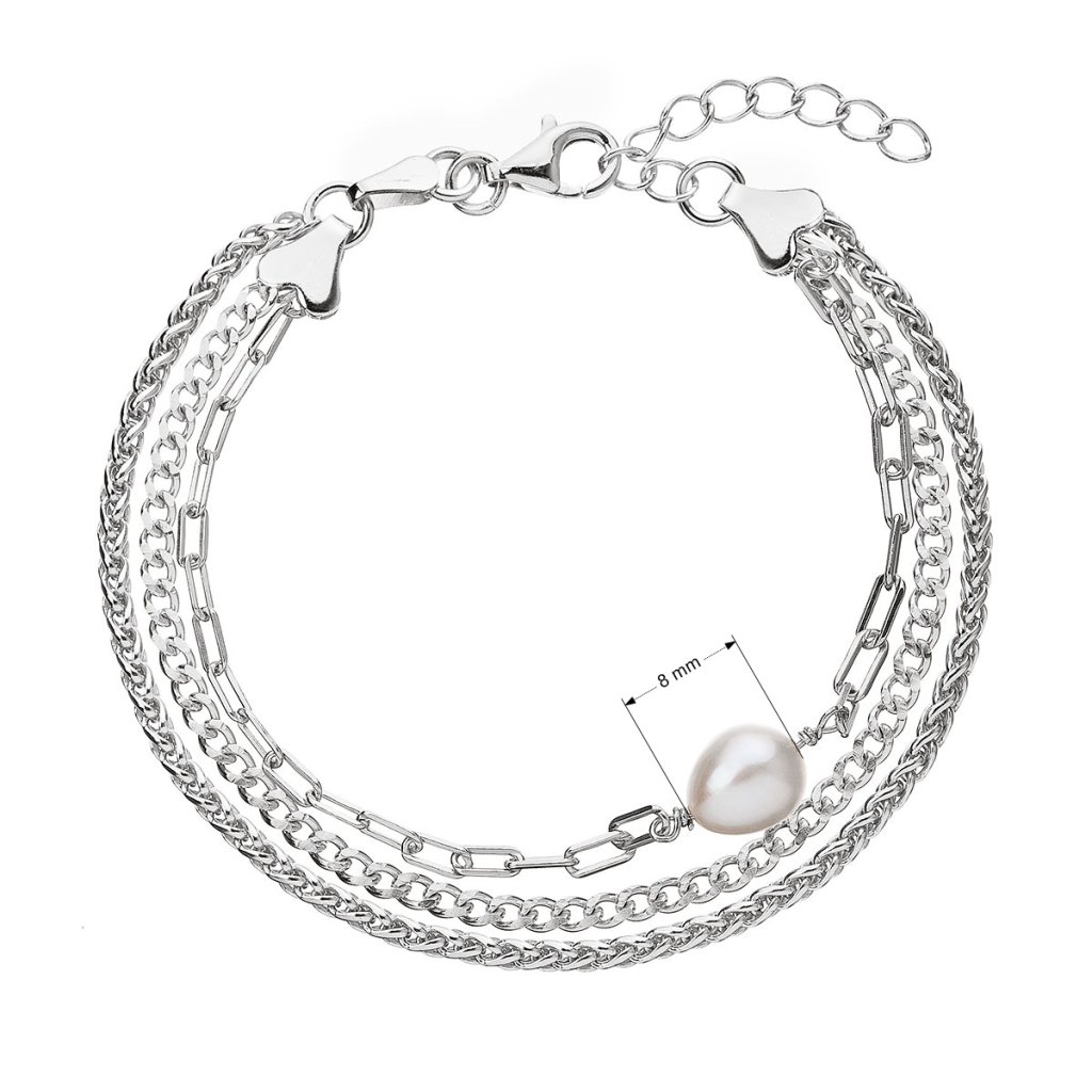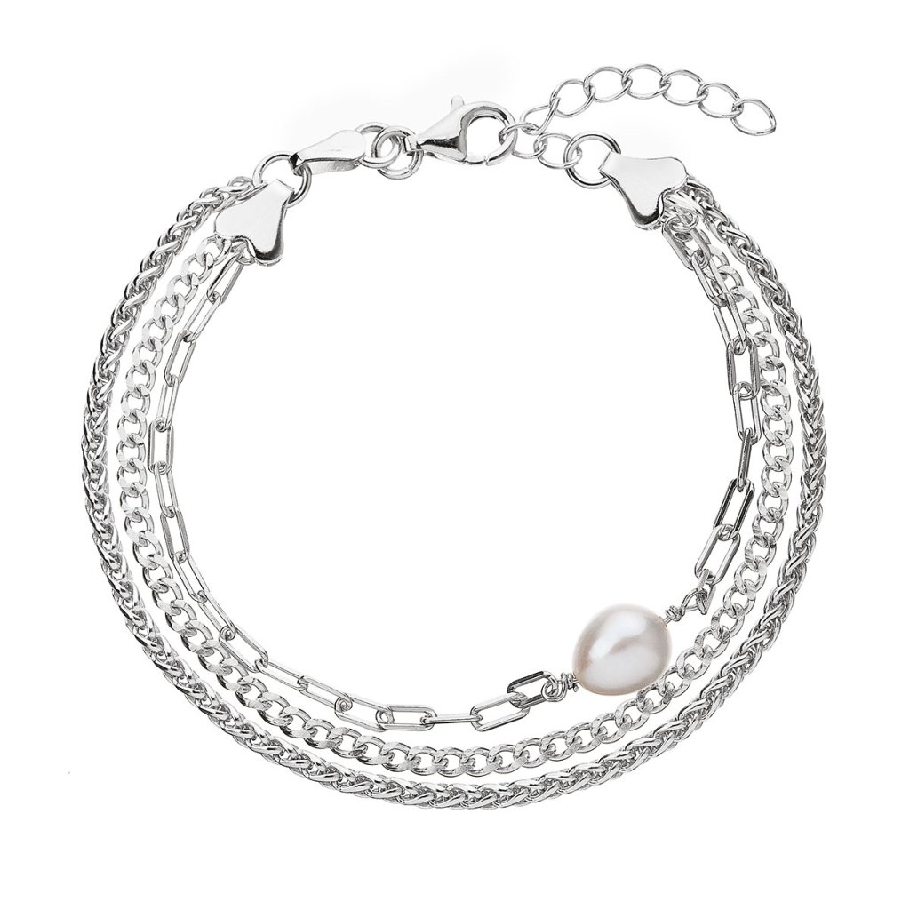 Trojitý strieborný náramok z retiazok s bielou perlou 23028.1