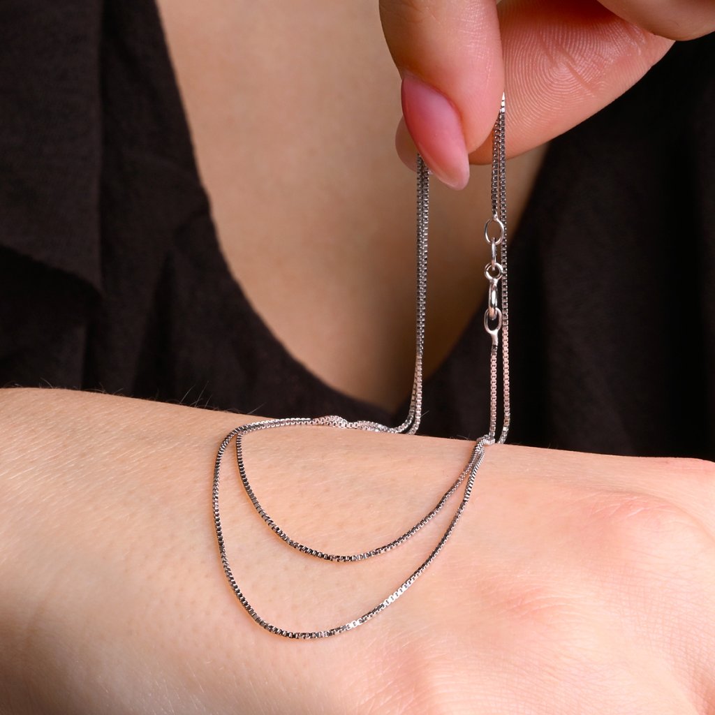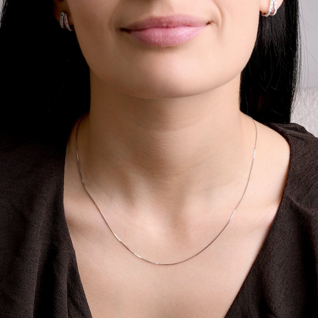 Tenká retiazka je vyrobená z bieleho 14kt zlata . Retiazku tvoria zbrúsené kocky, vďaka ktorým sa retiazka krásne leskne. Pristanú mu najmä drobné minimalistické prívesky.