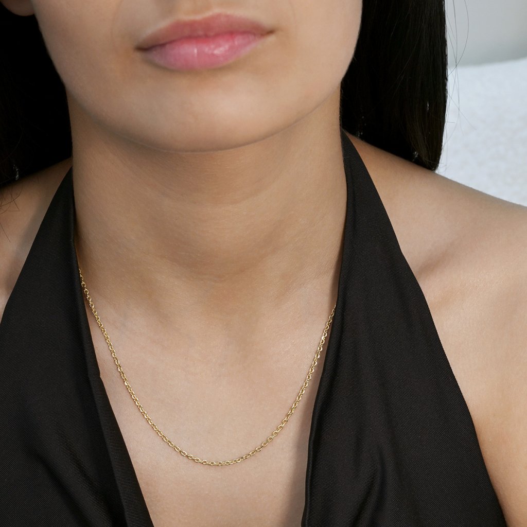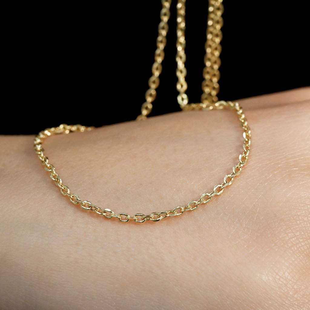 Tenká retiazka vyrobená zo žltého 14kt zlata . Retiazku tvoria zbrúsené očká, vďaka ktorým sa retiazka krásne leskne. Pristanú mu najmä drobné minimalistické prívesky.
