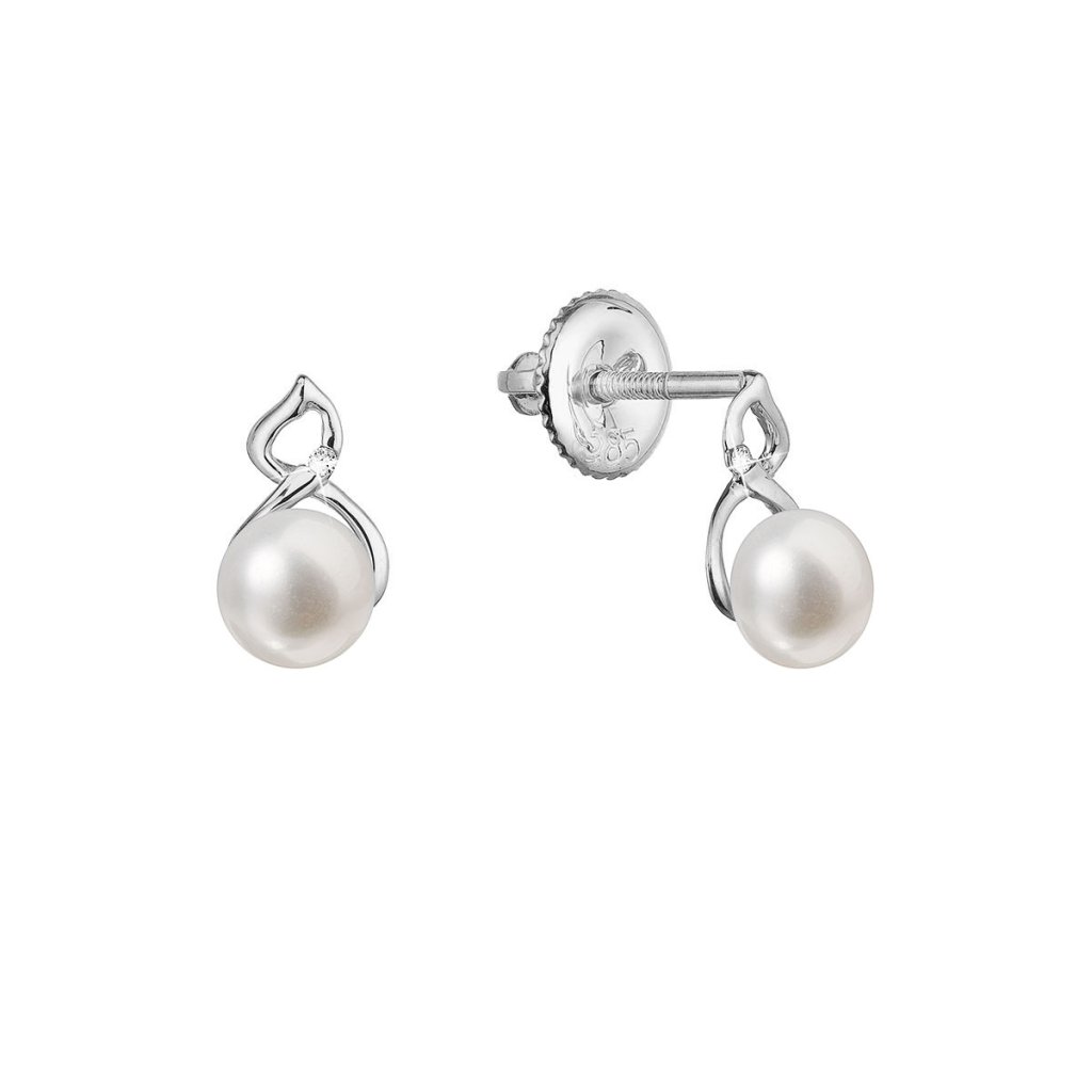 Zlaté 14 karátové náušnice biele zlato s riečnou perlou a briliantmi 81PB00042