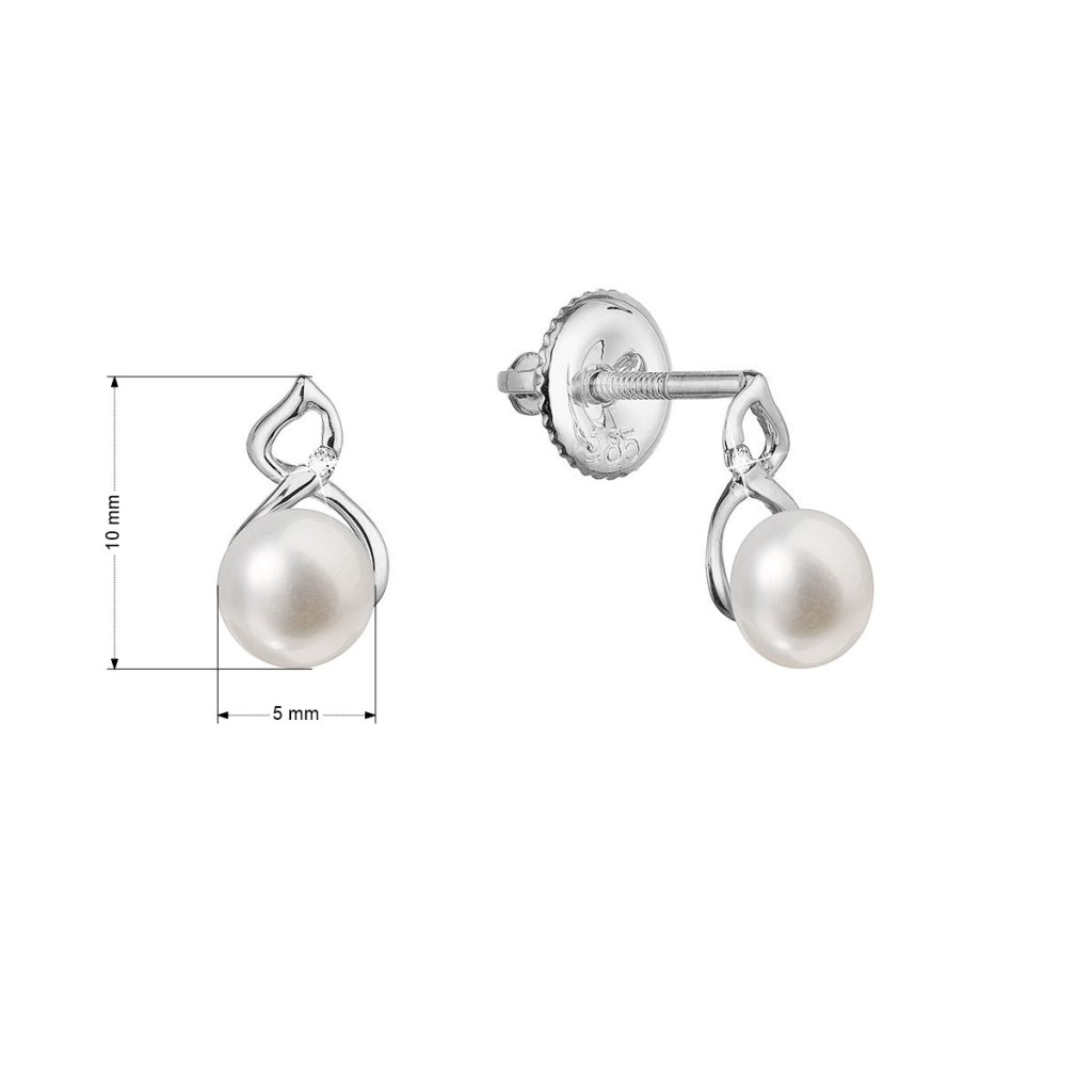 Zaujímavo prepletené zlaté náušnice s pravou perlou a briliantmi rozsvietia Váš všedný deň.Na náušnice 81PB00042 bolo použité 14 karátové biele zlato s rýdzosťou 585/1000 a pravé kultivované sladkovodné riečne perly. Perly o veľkosti 5 mm sa môžu pochváliť najvyššou kvalitou AAA . Náušnice zdobia malý briliant vsadený do zlata, celkom dva brilianty majú 0,010 ct.