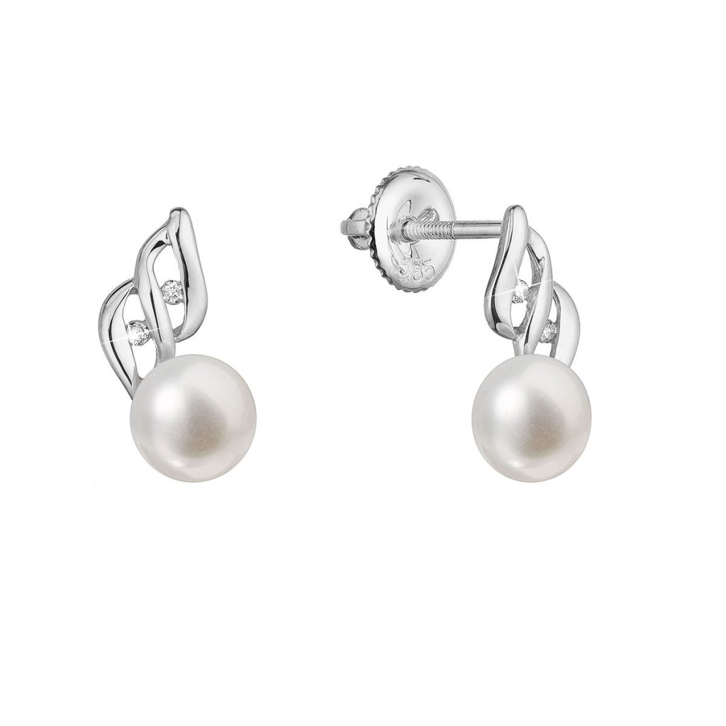 Zlaté 14 karátové náušnice biele zlato s riečnou perlou a briliantmi 81PB00043