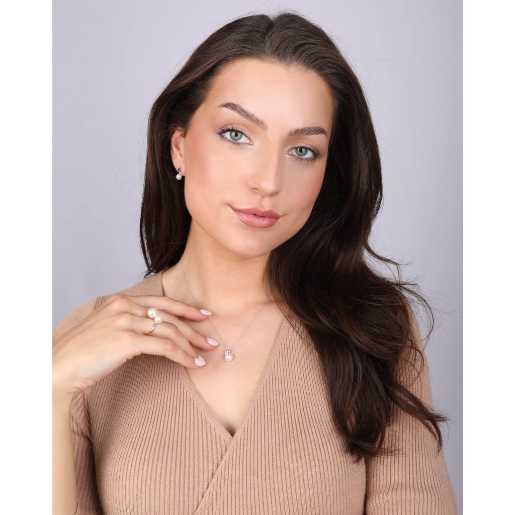 Perlička vložená na lístočku s trblietavými kvapkami rosy z briliantov, tak krásne sú tieto náušnice.Na náušnice 81PB00043 bolo použité 14 karátové biele zlato s rýdzosťou 585/1000 a pravé kultivované sladkovodné riečne perly spolu s briliantmi. Perly o veľkosti 6 mm sa môžu pochváliť najvyššou kvalitou AAA . Celkový počet briliantov je 4 ks o 0,036 ct.