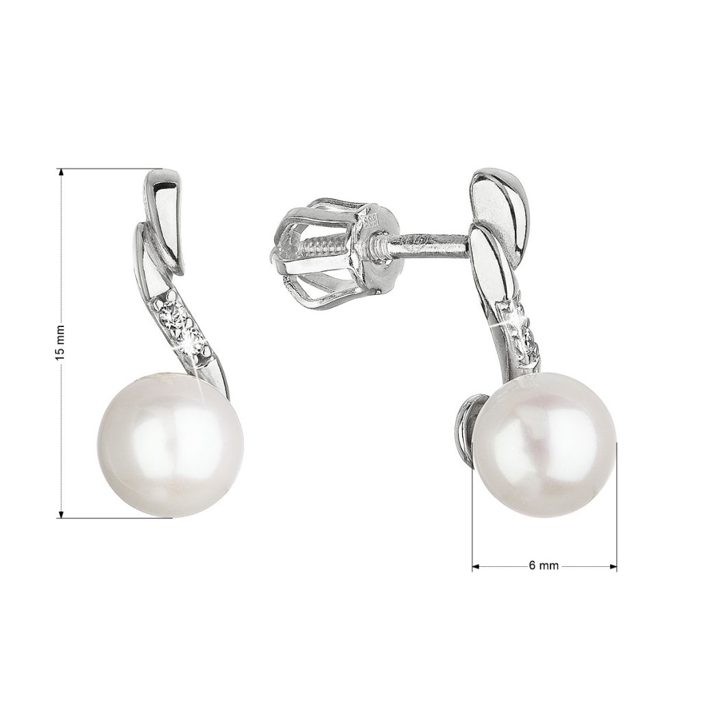 Parametre zlatých 14-karátových náušníc biele zlato s riečnou perlou a zirkónmi 81PZ00027