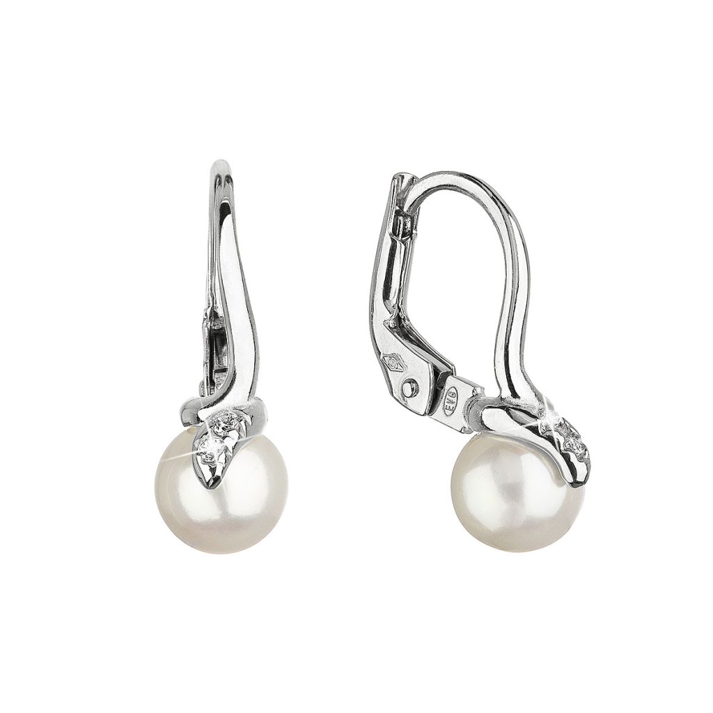 Zlaté 14 karátové náušnice biele zlato s riečnou perlou a zirkónmi 81PZ00029