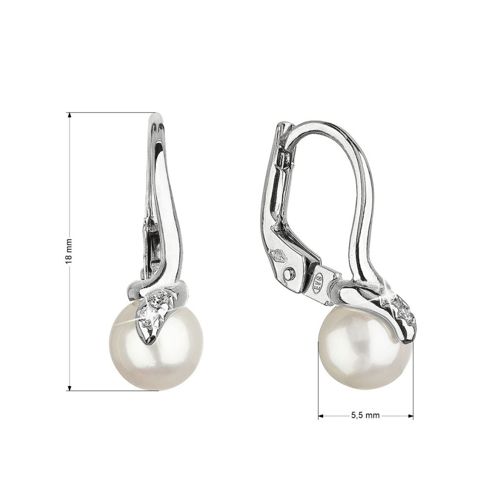 Náušnice 81PZ00029 sú vyrobené zo 14 karátového bieleho zlata s rýdzosťou 585/1000 s malou guľatou riečnou perlou tej najvyššej kvality AAA . Šírka perličky je 5,5-6 mm. Náušnice sú veľmi zaujímavé svojim tvarom a kombináciou perly, zlata a zirkónov. Náušnice majú zapínanie na klapku, ktorá ich ochráni proti nechcenej strate.