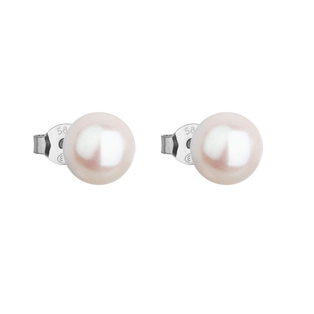 Zlaté 14 karátové náušnice kôstky biele zlato s bielou riečnou perlou 821042.1 biela