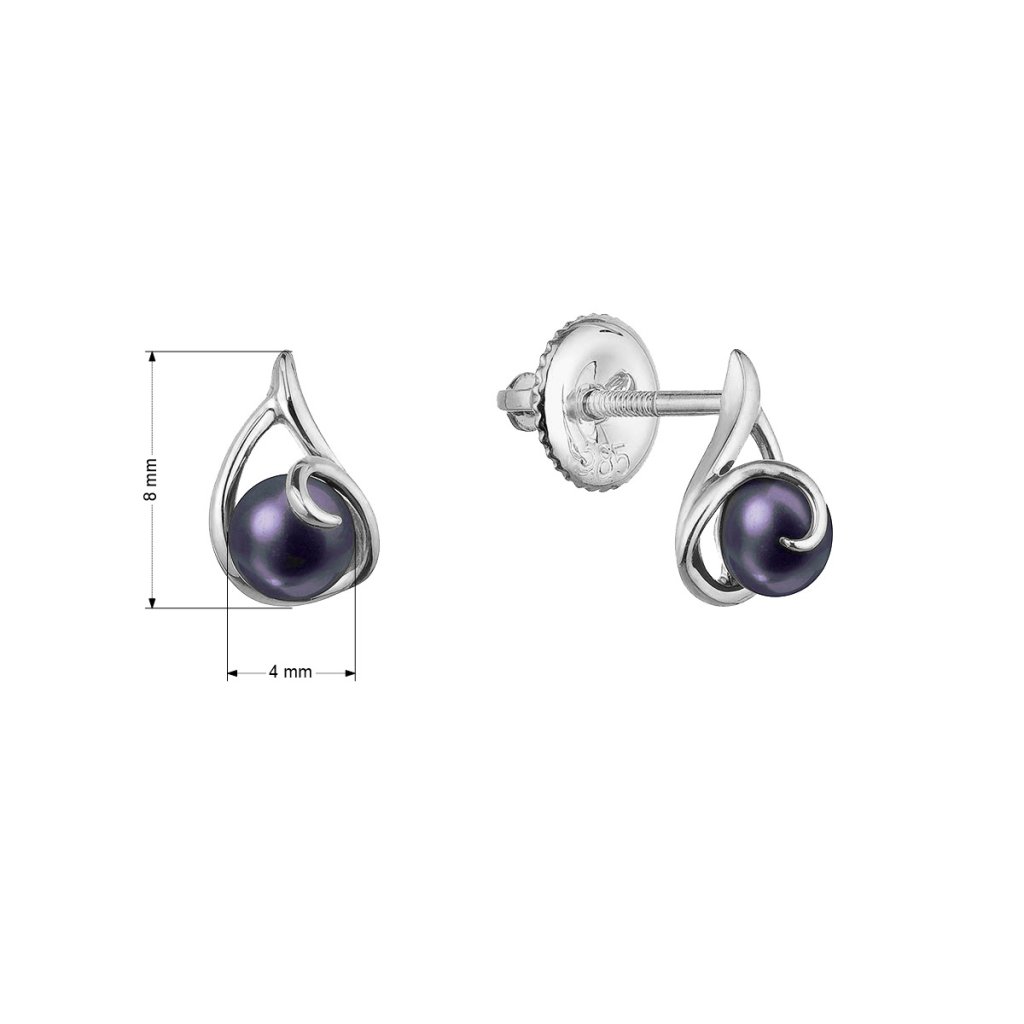 Na náušnice 81P00035 bolo použité 14 karátové biele zlato s rýdzosťou 585/1000 a pravé kultivované sladkovodné riečne perly , ktoré sú dominantou šperku. Perly o veľkosti 4 mm majú tmavo modré odtiene až do fialovej a môžu sa pochváliť najvyššou kvalitou AAA .