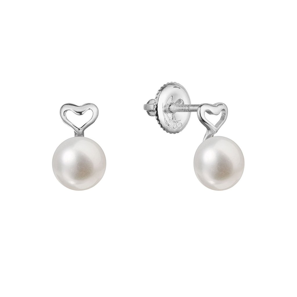 Zlaté 14 karátové náušnice kôstky biele zlato srdiečko s bielou riečnou perlou 81P00048