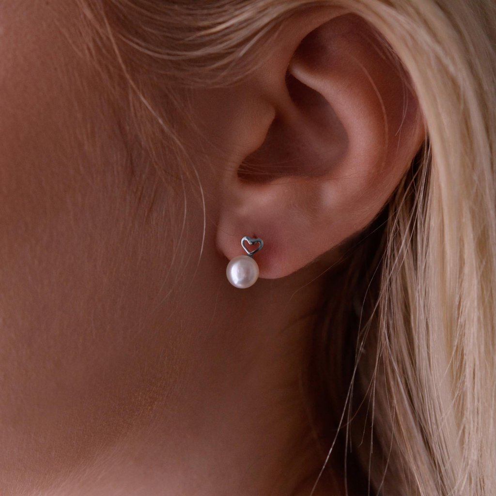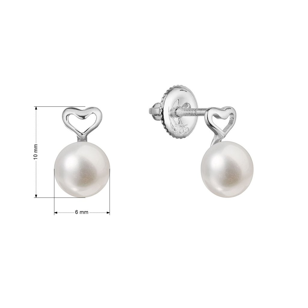 Minimalistické náušnice zlaté srdiečka sú zvýraznené bielou riečnou perličkou .Na náušnice 81P00048 bolo použité 14 karátové biele zlato s rýdzosťou 585/1000 a pravé kultivované sladkovodné riečne perly. Perly o veľkosti 6 mm sa môžu pochváliť najvyššou kvalitou AAA .