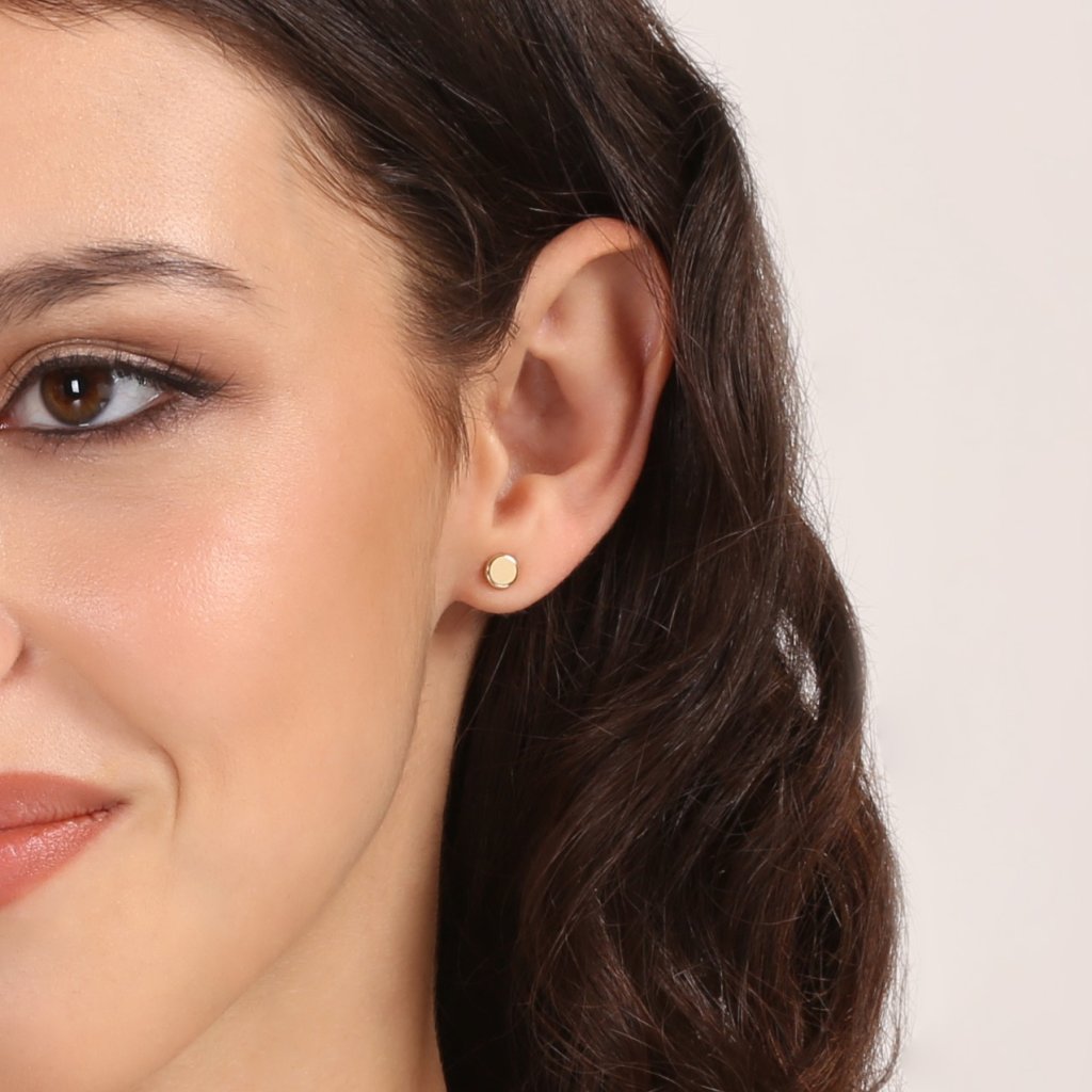 Luxusné dámske náušnice v podobe jemných zlatých placiek predstavujú dokonalú syntézu minimalistického dizajnu a nadčasovej elegancie. Precízne spracovaný šperk zo 14-karátového zlata v okrúhlom tvare je ideálnym doplnkom pre ženy s vycibreným vkusom.