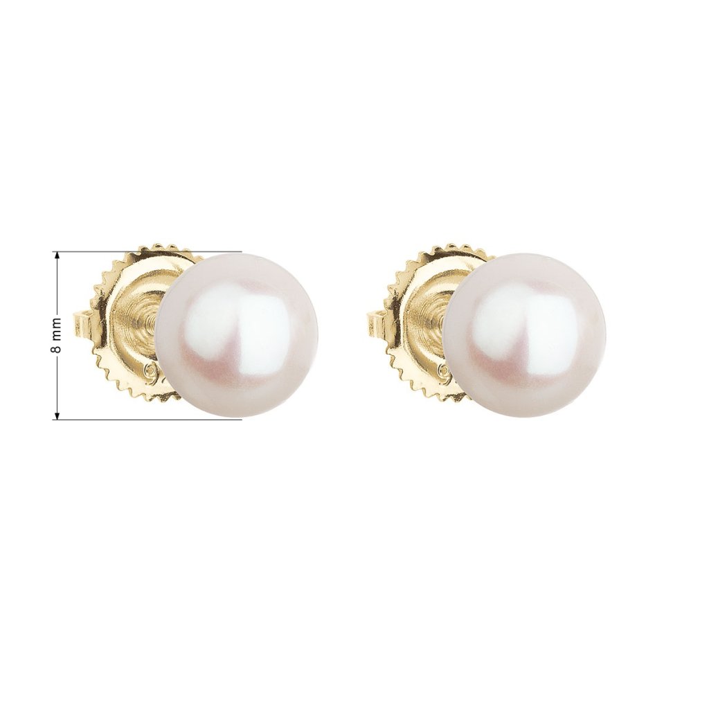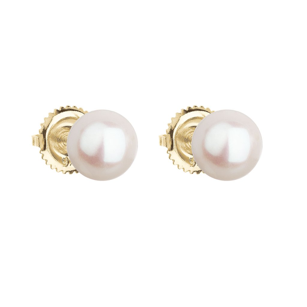 Zlaté 14 karátové náušnice kôstky s bielou riečnou perlou 921004.1