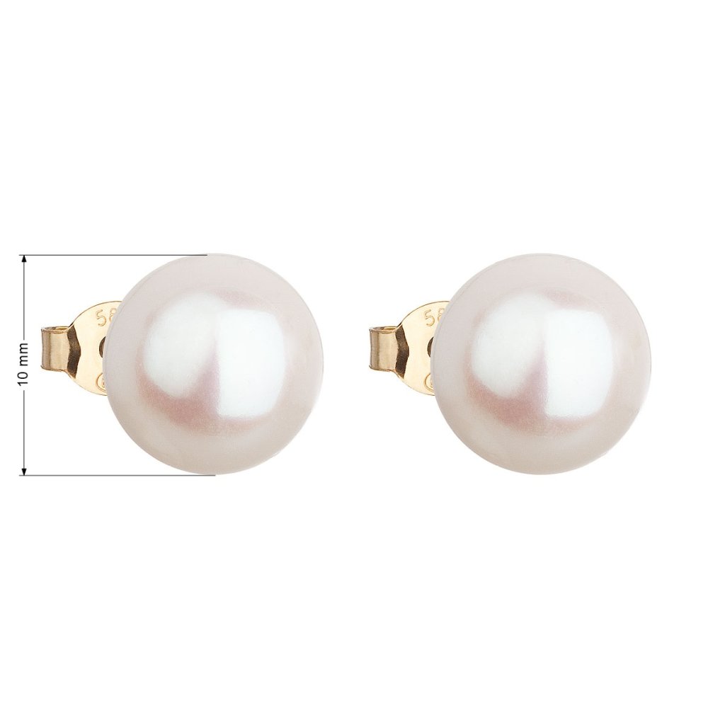 Zlaté 14 karátové náušnice kôstky s bielou riečnou perlou 921043.1