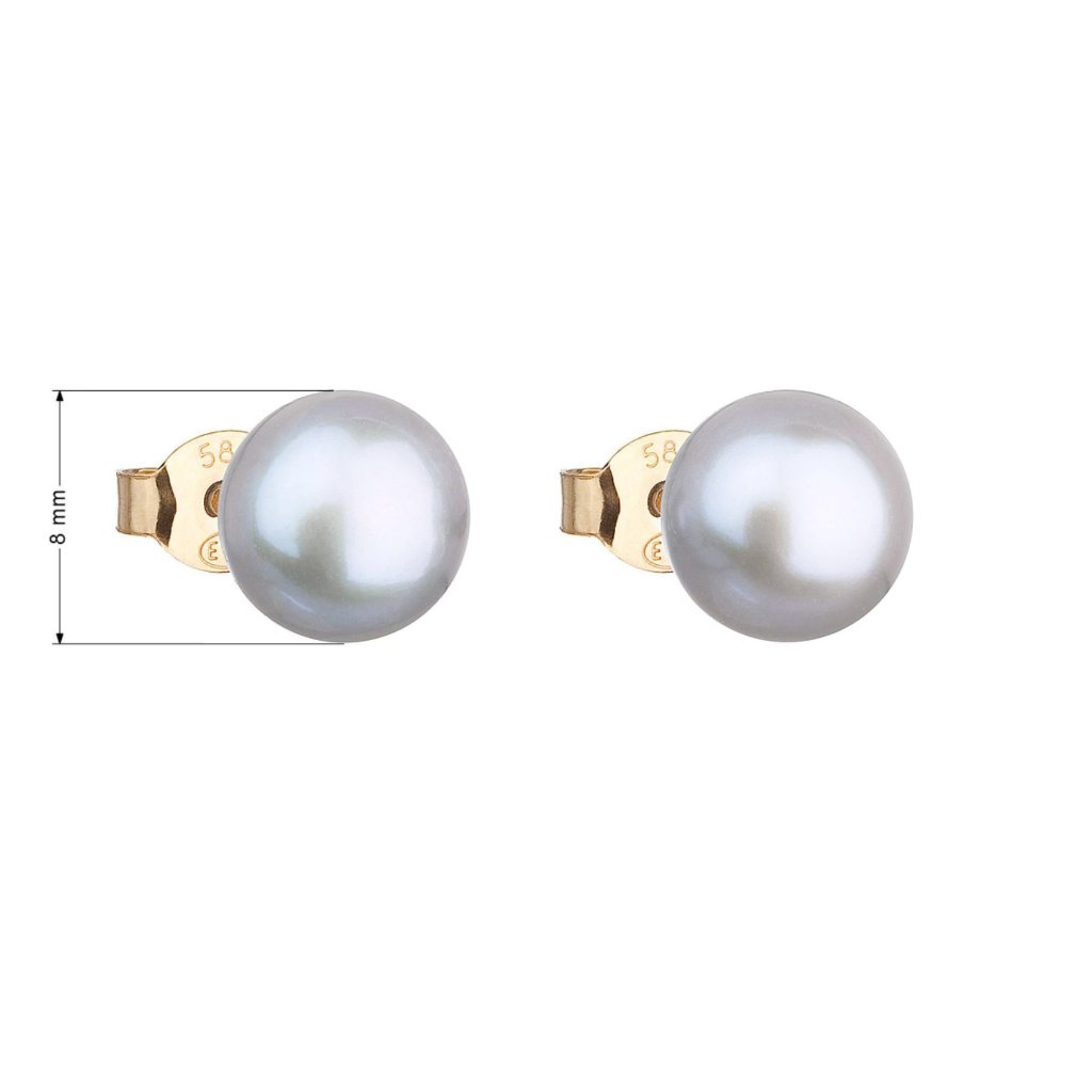 Zlaté 14 karátové náušnice kôstky so šedou riečnou perlou 921042.3