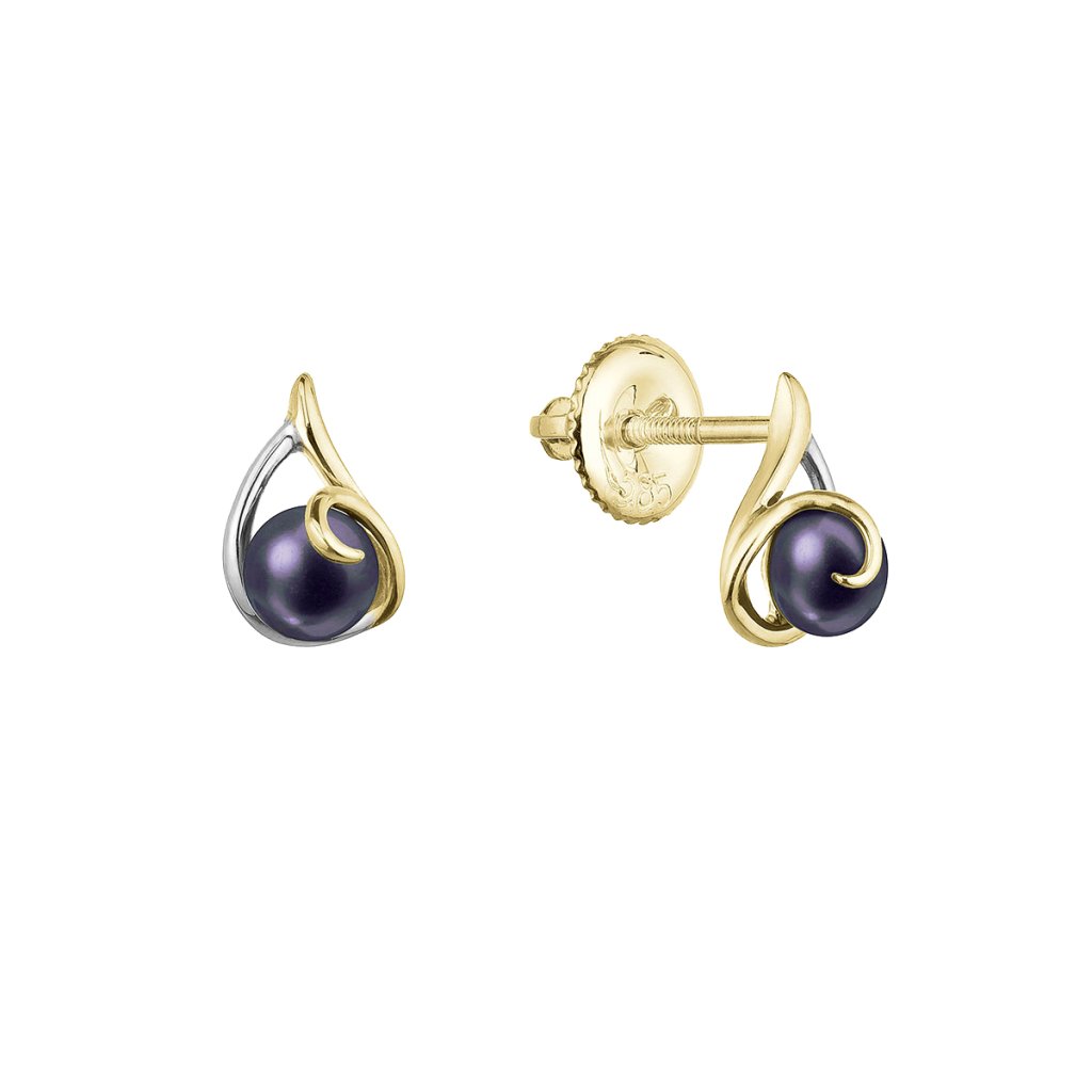 Na náušnice 91P00035 bolo použité 14 karátové žlté a biele zlato s rýdzosťou 585/1000 a pravé kultivované sladkovodné riečne perly. Tmavomodré perly o veľkosti 4 mm sa môžu pochváliť najvyššou kvalitou AAA .