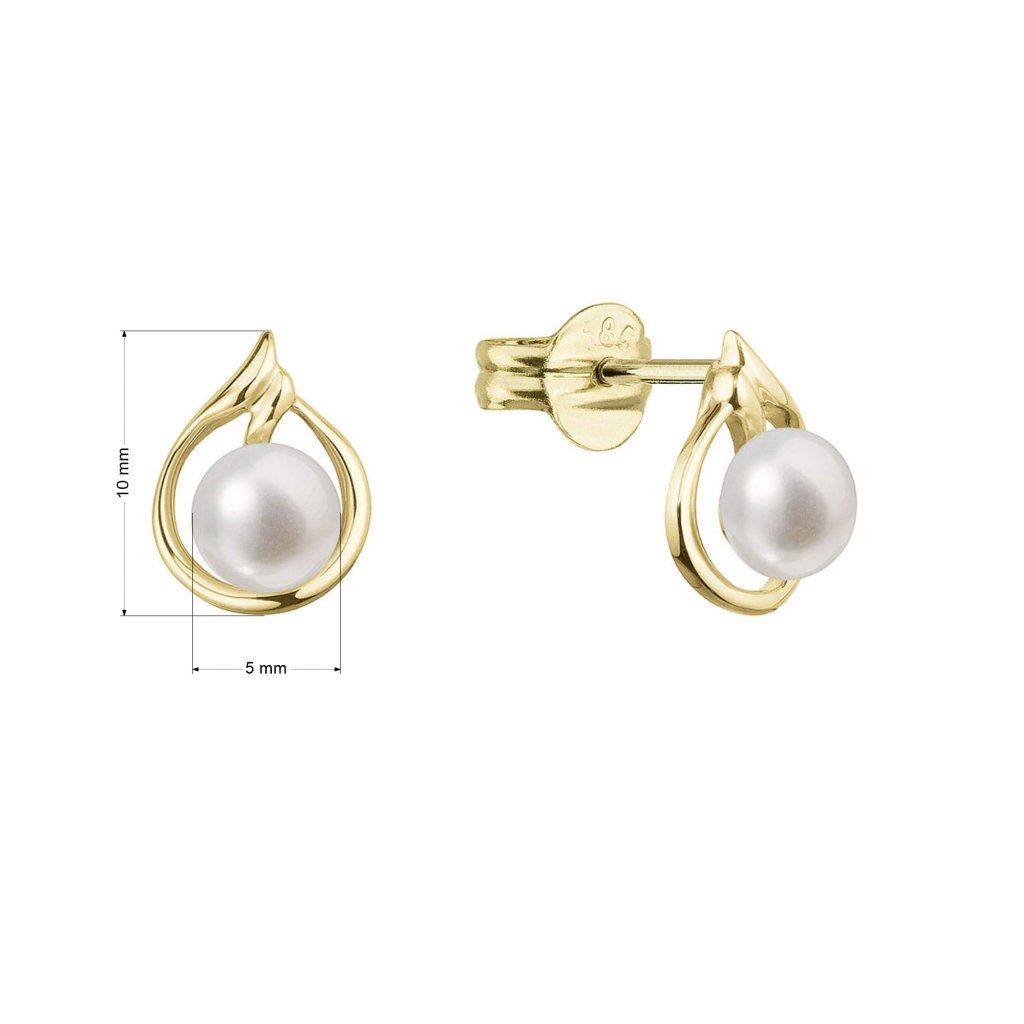 Zlaté 14 karátové náušnice kôstky žlté zlato s bielou riečnou perlou 91P00038