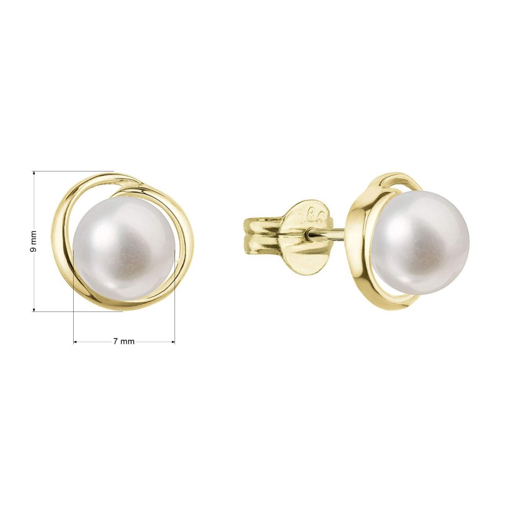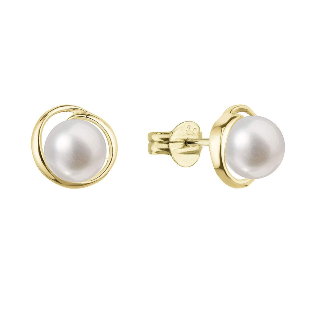 Zlaté 14 karátové náušnice kôstky žlté zlato s bielou riečnou perlou 91P00040