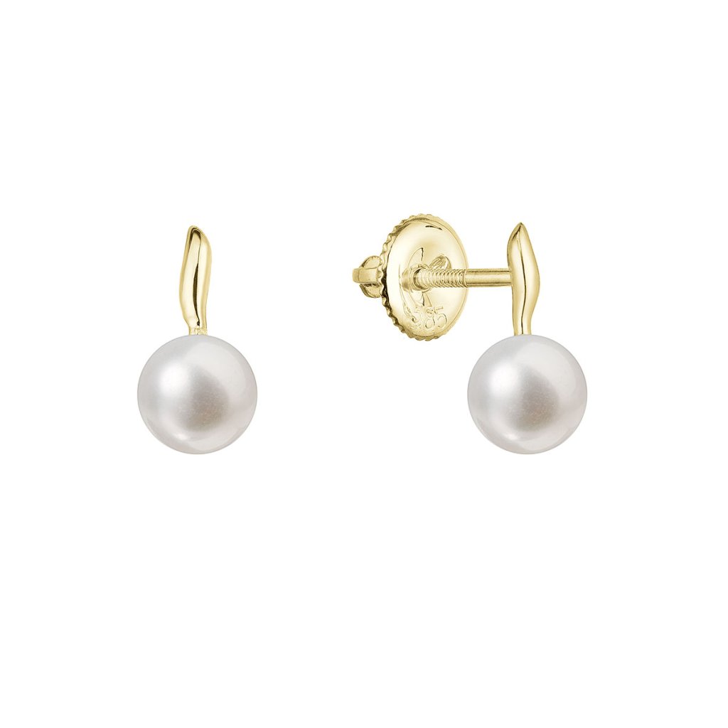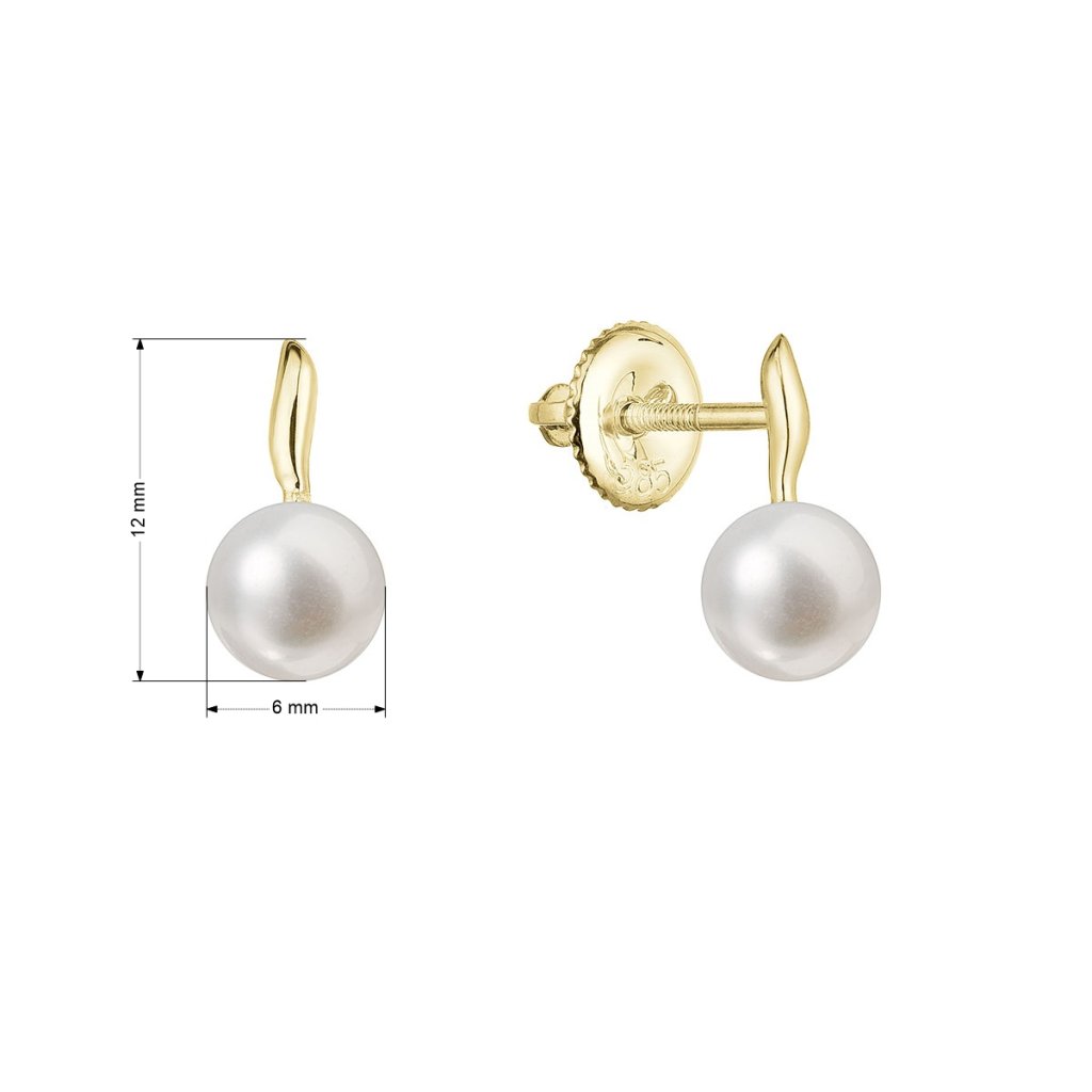 Zlaté 14 karátové náušnice kôstky žlté zlato s bielou riečnou perlou 91P00049