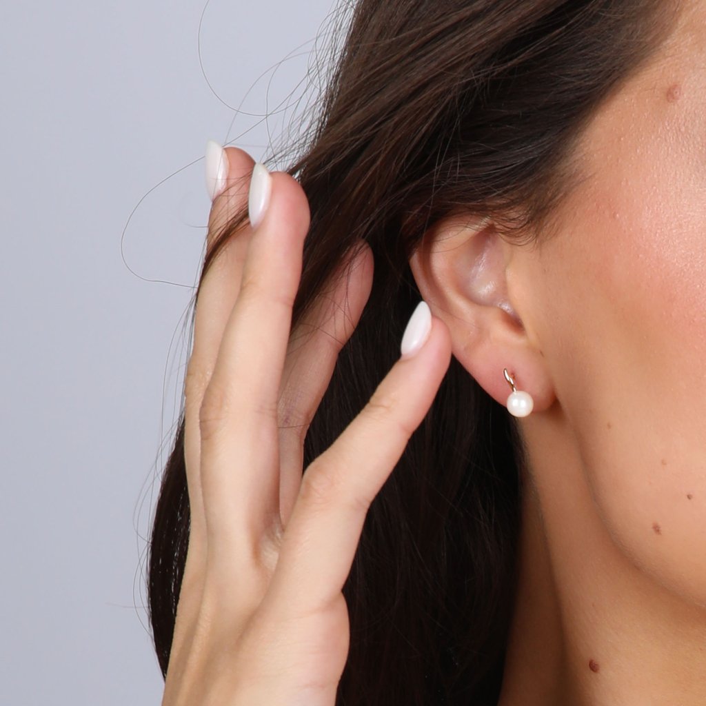 Jednoduché, ale zároveň nadčasovo elegantné – tak je možné popísať tieto nádherné náušnice zo 14 karátového žltého zlata s bielou riečnou perlou . Ich čistý a minimalistický dizajn zdôrazňuje krásu lesku zlata a jedinečnosť každej riečnej perly.