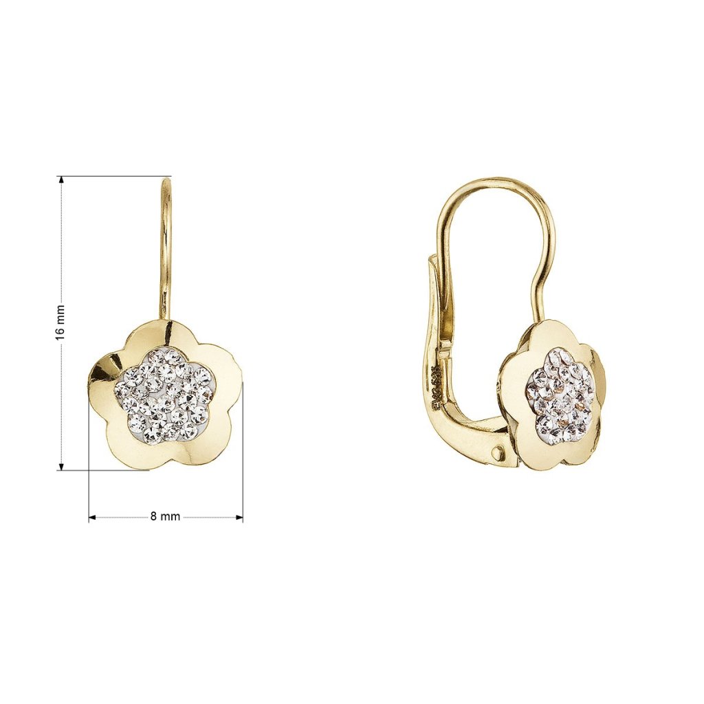Zlaté 14 karátové náušnice kytička so zirkónmi 91Z00069