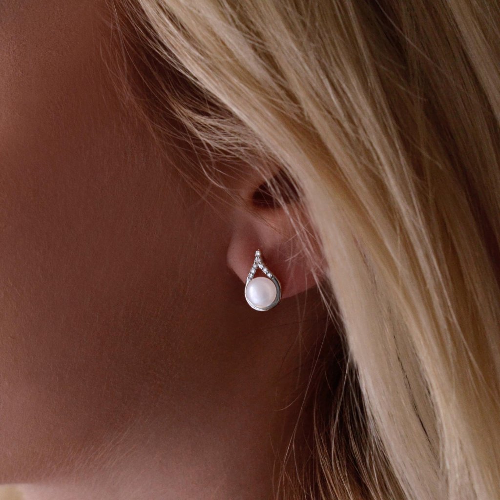 Neodolateľnosť týmto náušniciam dodávajú žiarivé brilianty nad perlou. Celkom majú náušnice 16 briliantov, 0,080 ct.