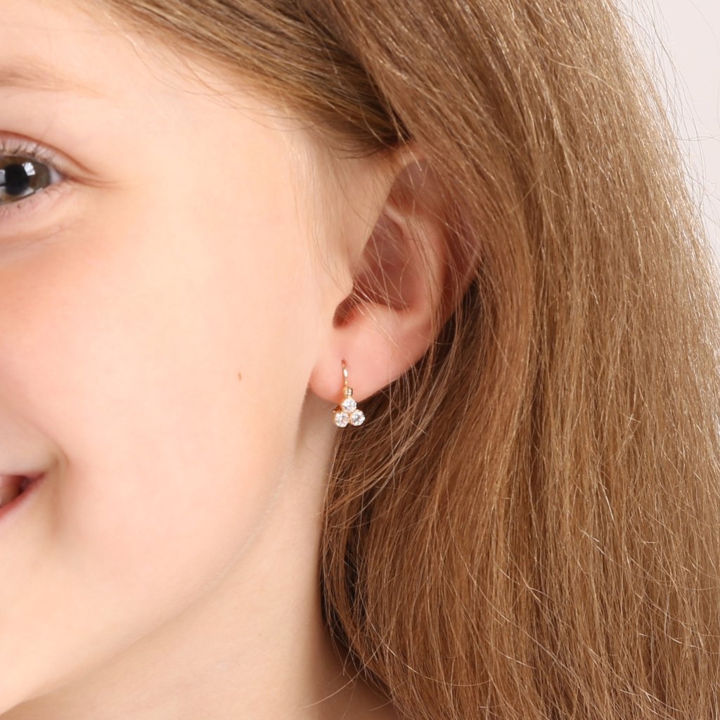 Náušnice z prémiového 14-karátového žltého zlata ponúkajú roztomilý tvar štyroch prepojených guličiek pripomínajúcich drobný vínny strapec. Tri z týchto nežných guličiek sú precízne vysadené bielymi zirkónmi, ktoré dodávajú šperku jemný ligot. Bezpečnostné zapínanie na brizúru je špeciálne navrhnuté pre najmenšie deti od narodenia - zaručuje maximálne pohodlie a úplnú bezpečnosť pri nosení. Náušnice sú ľahké, šetrné k detskej pokožke a ideálne ako prvý šperk pre malé dievčatká.