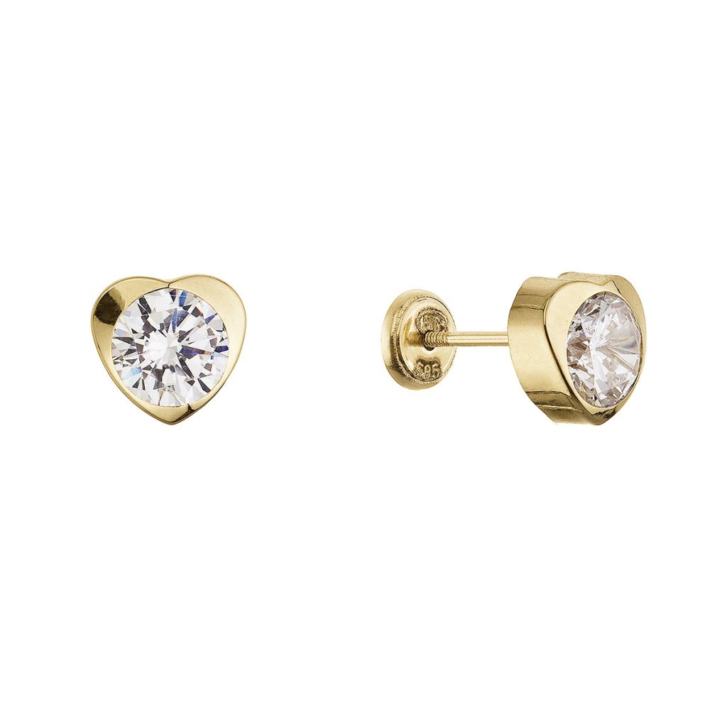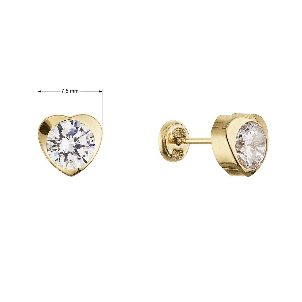 Zlaté 14 karátové náušnice srdiečka s bielym zirkónom 91Z00064