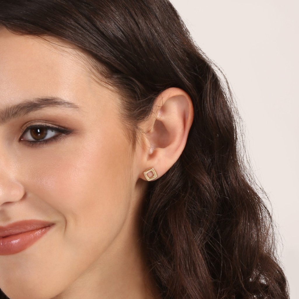 Čistý geometrický dizajn zlatých náušníc s precízne vyvedeným obrysom štvorca prináša moderný a sebavedomý šperk. Náušnice sú určené pre ženy, ktoré oceňujú minimalistickú eleganciu s jasným dizajnovým rukopisom.