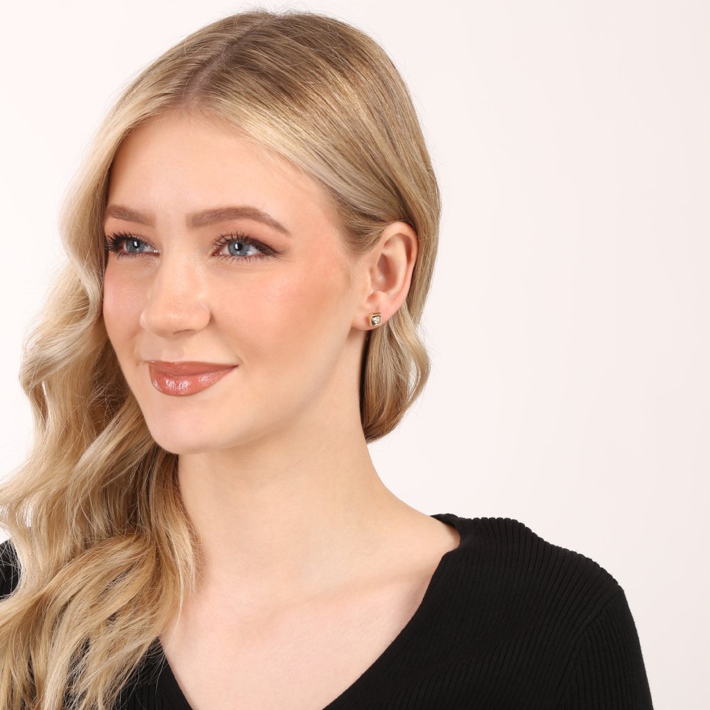 Náušnice z prémiového 14-karátového žltého zlata ponúkajú originálny tvar jemne prehnutých štvorčekov, ktoré vytvárajú dynamický a pútavý vizuálny dojem. Uprostred každej náušnice je precízne vsadený drobný biely zirkón, ktorý dodáva šperku jemný, žiarivý akcent. Ľahko zvlnený tvar štvorčekov symbolizuje premenlivosť a pohyb, zatiaľ čo čistý dizajn podčiarkuje modernú minimalistickú eleganciu. Kvalitné skrutkovacie zapínanie zaručuje maximálne pohodlie a spoľahlivosť pri nosení. Každá náušnica je precíznym remeselným spracovaním z pravého zlata zárukou výnimočnosti a trvalej hodnoty.