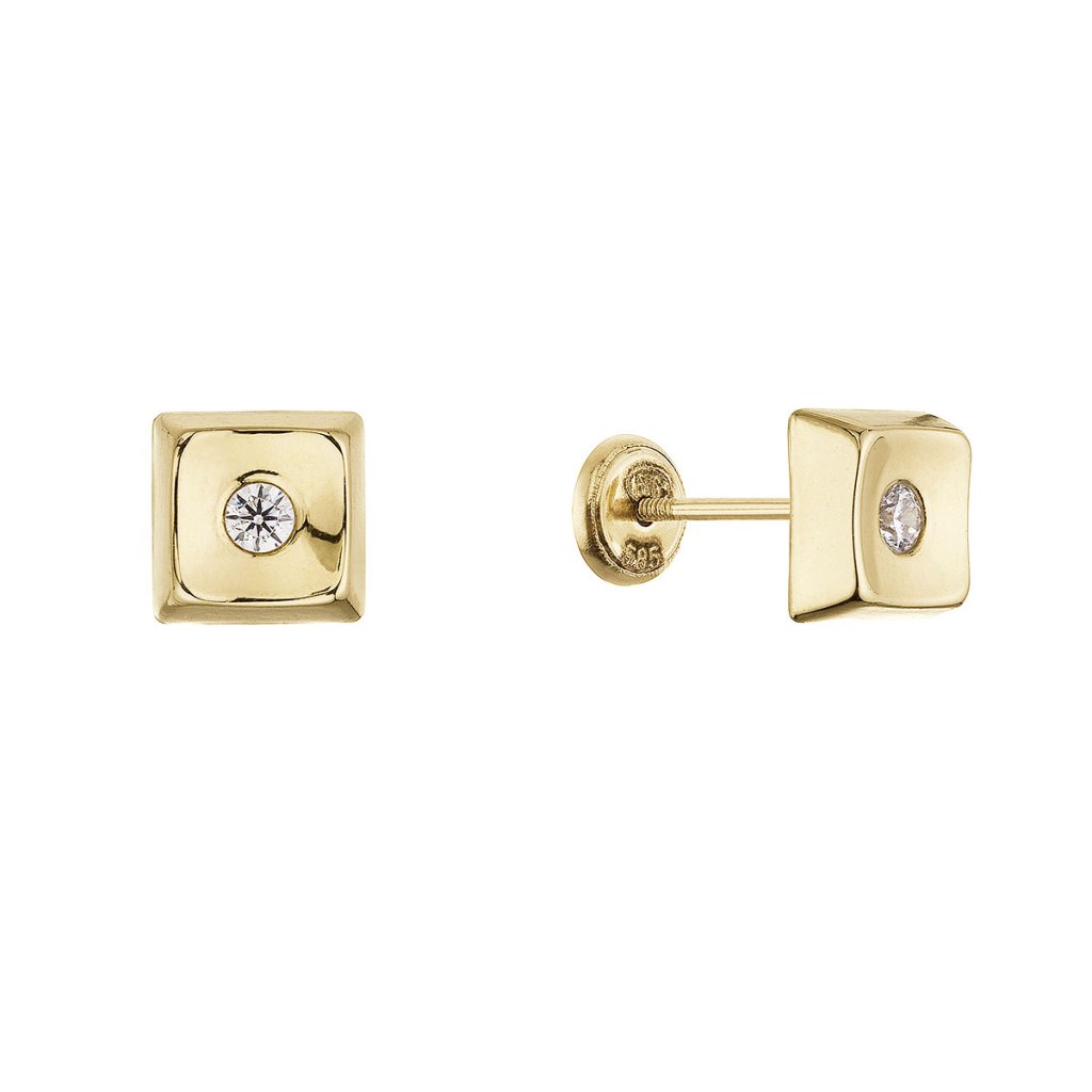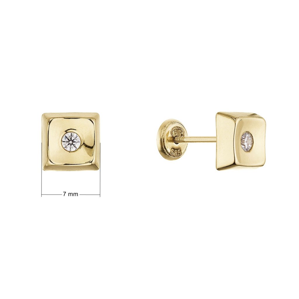 Zlaté 14-karátové náušnice štvorec so zirkónikom 91Z00067