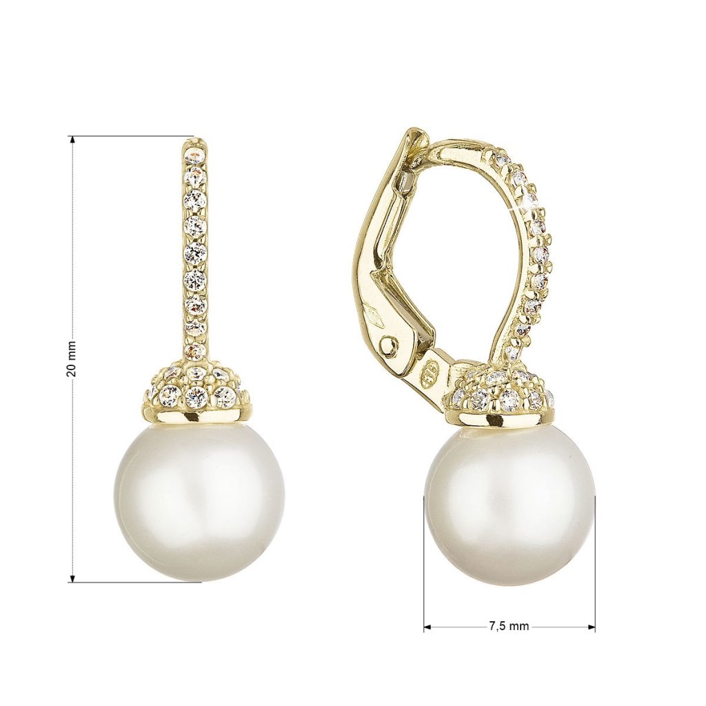 Parametre zlatých 14-karátových náušníc žlté zlato s riečnou perlou a zirkónmi 91PZ00022
