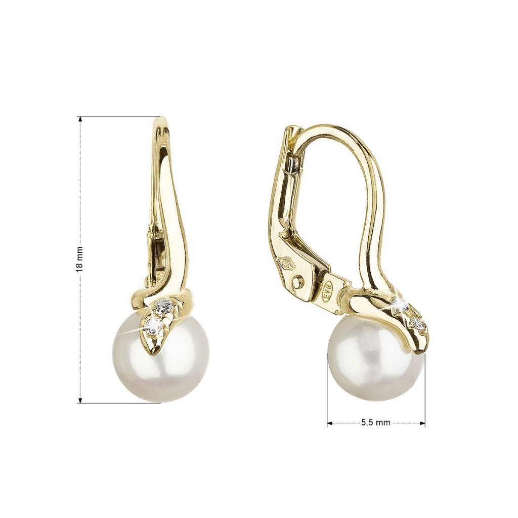 Parametre zlatých 14 karátových náušníc žlté zlato s riečnou perlou a zirkónmi 91PZ00029