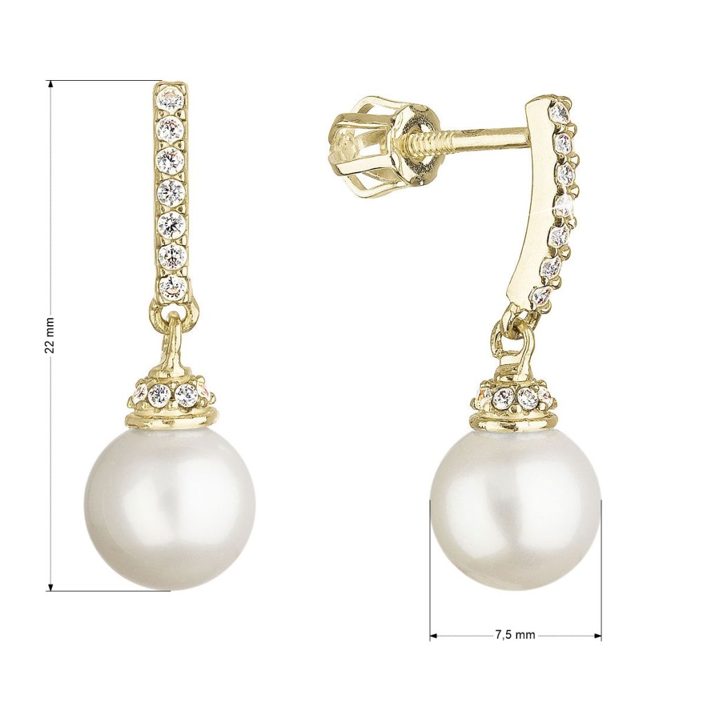 Nádherné visiace zlaté náušnice s guľatou riečnou perlou zdobené zirkónmi zaujmú pohľady všetkých.