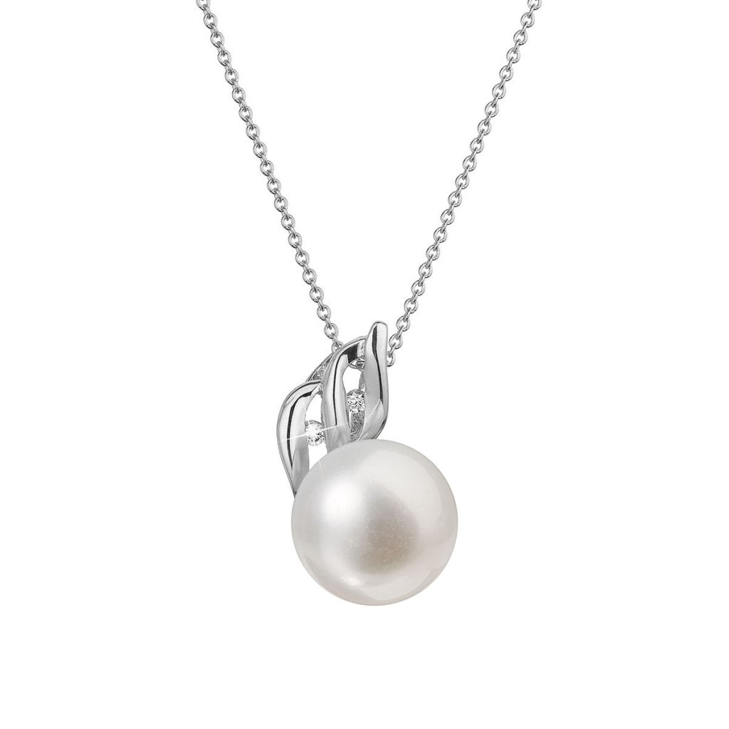 Zlatý 14 karátový náhrdelník biele zlato s bielou riečnou perlou a briliantmi 82PB00038