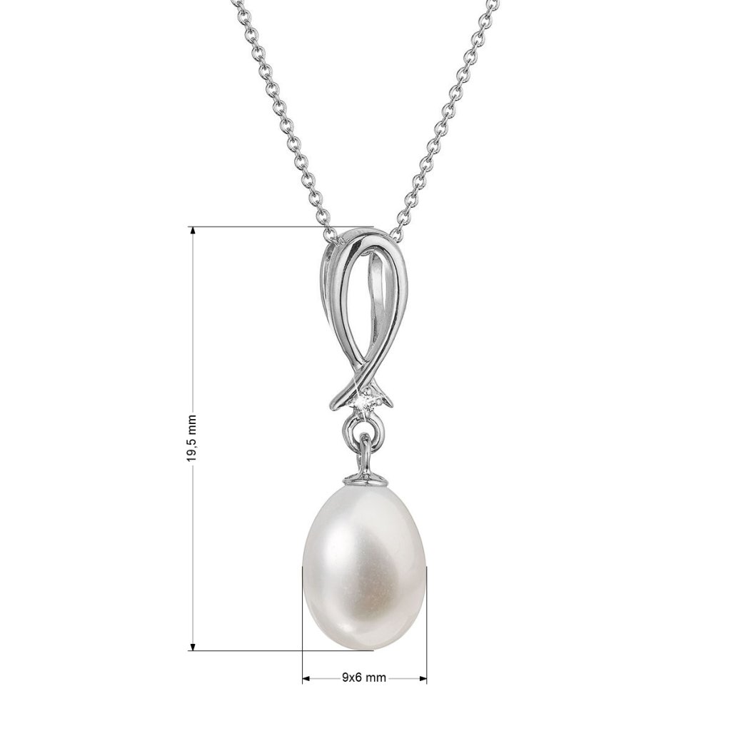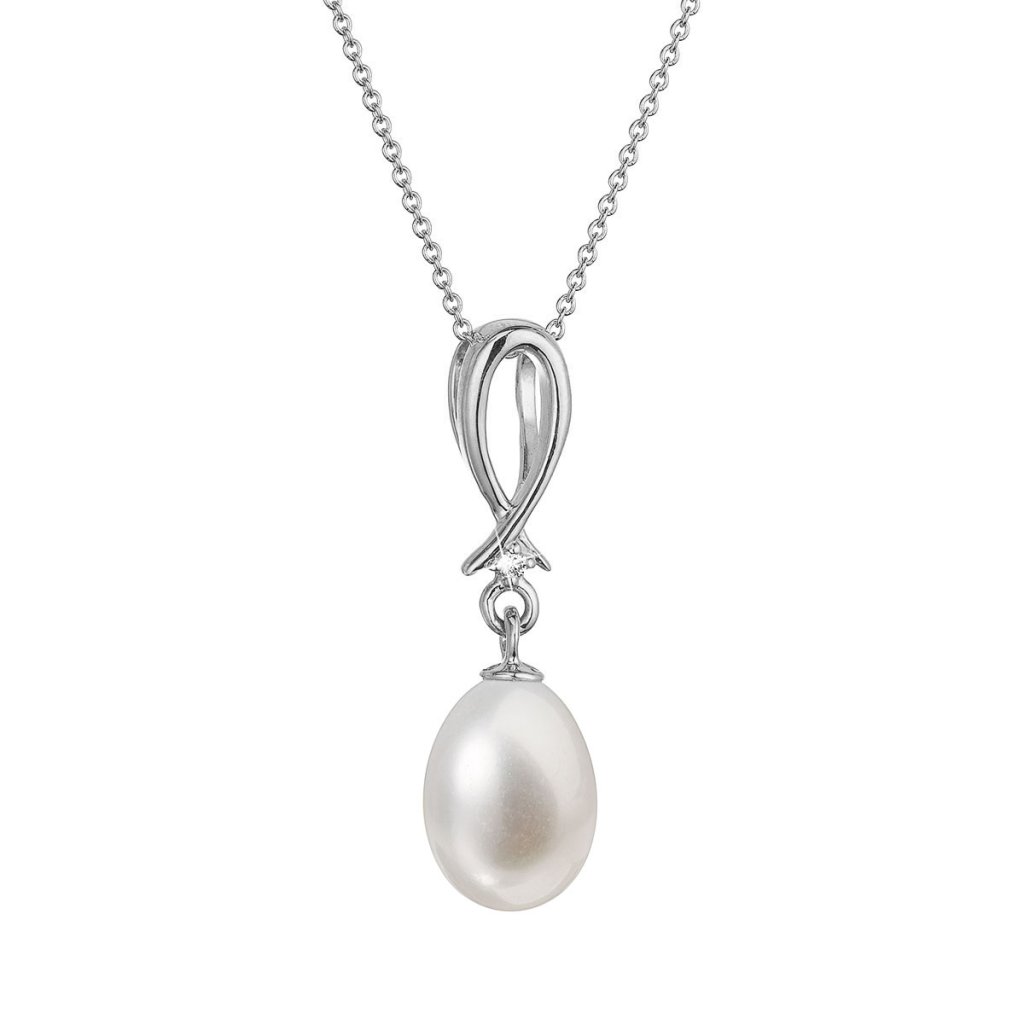 Zlatý 14 karátový náhrdelník biele zlato s bielou riečnou perlou a briliantom 82PB00034